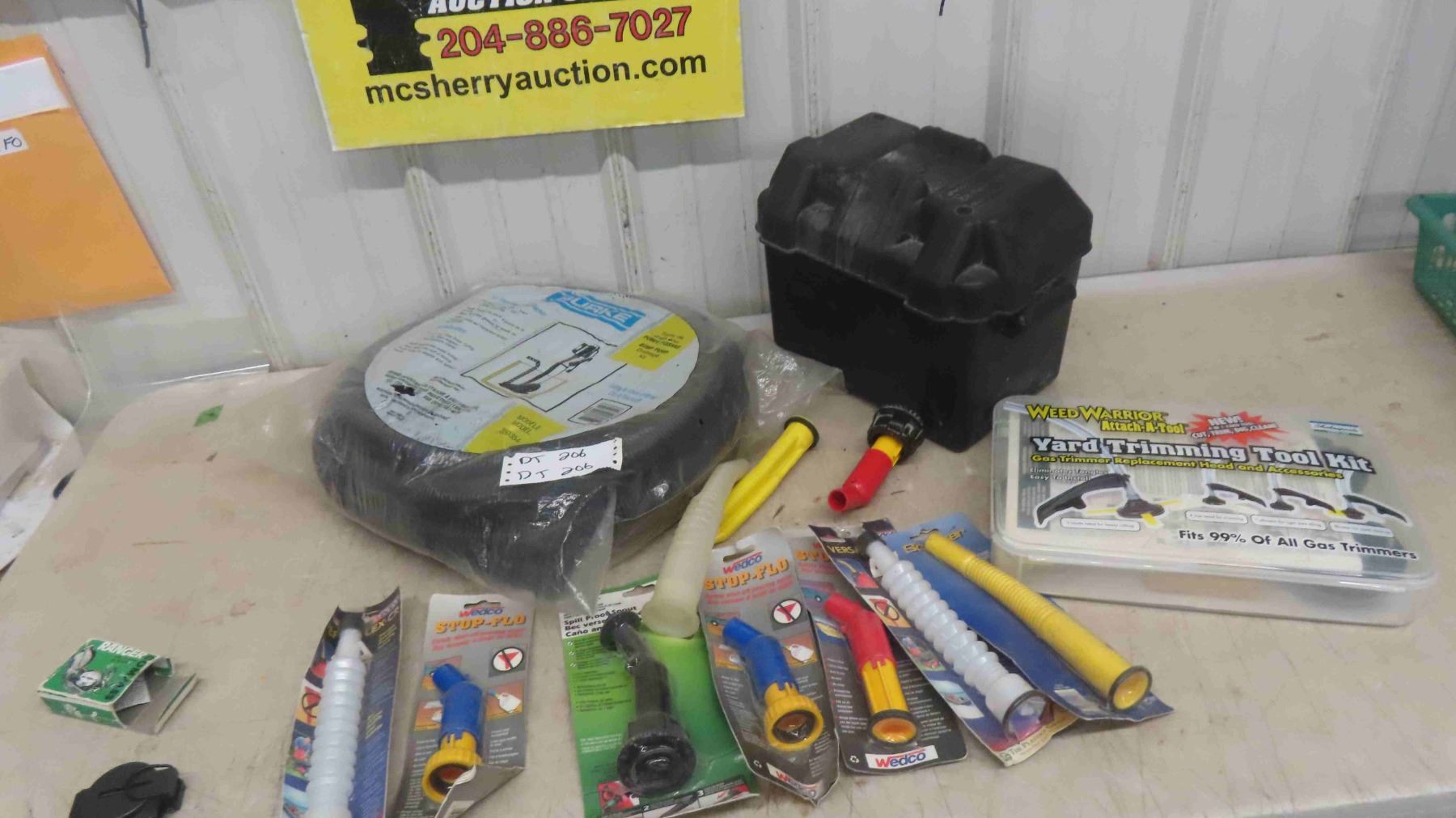 Sump Pump Hose, Battery Box, Weed Warrier Yard Trimming Tool Kit, Fuel Nozzles