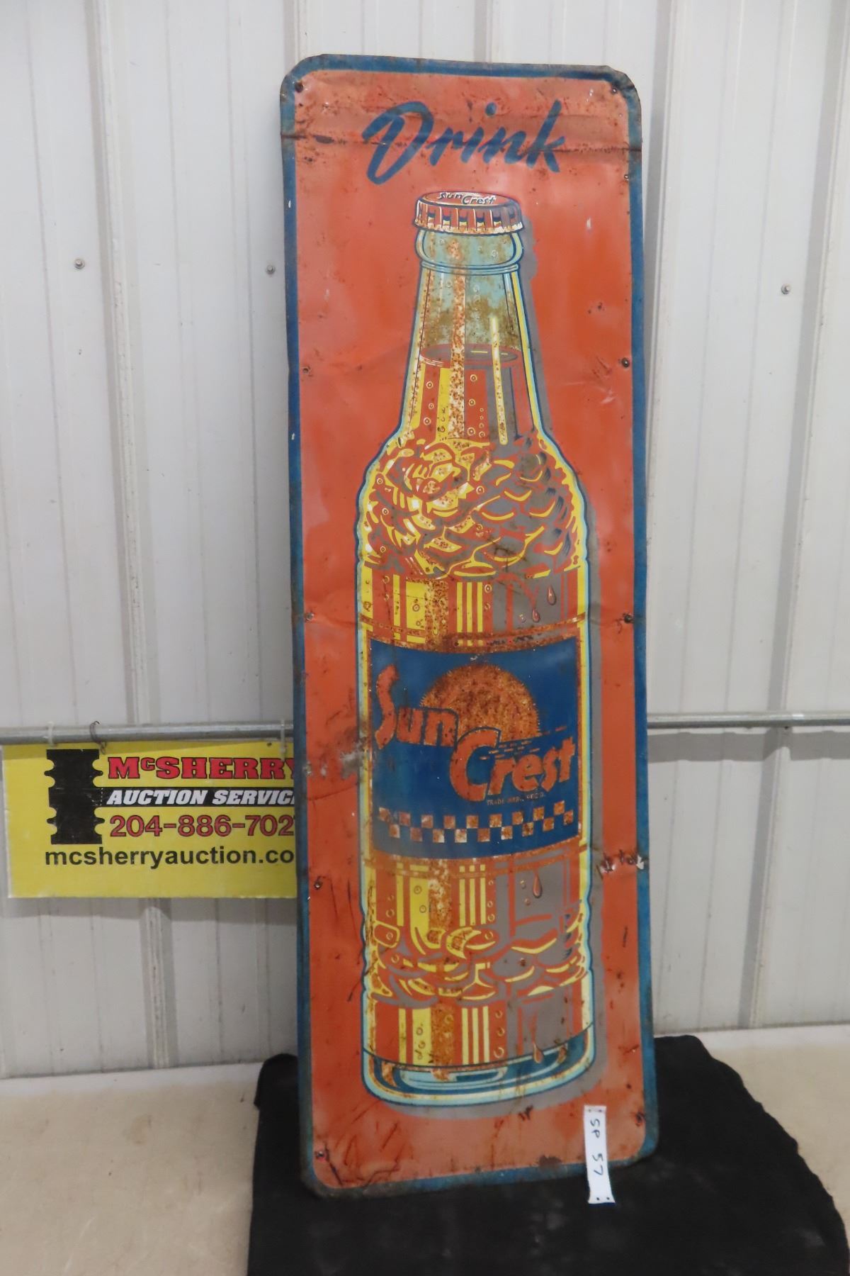 Sun Crest- Metal Embossed Sign 17"x53" 1956 Bottle Sign