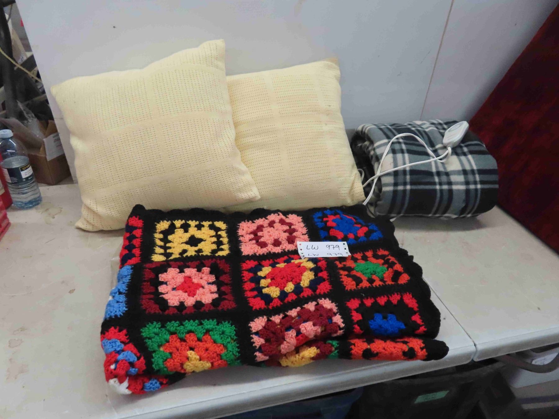Sunbeam Electric Blanket, Knitted/Crochet Blanket & 2 Toss Pillows