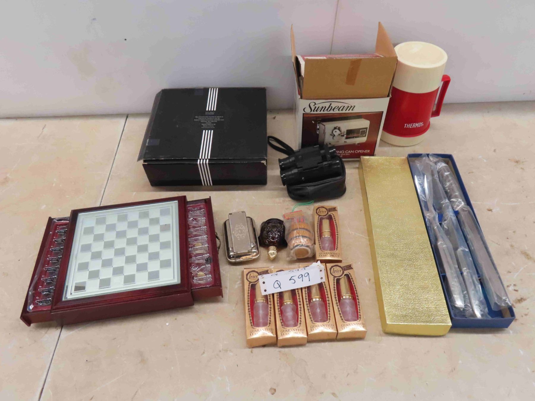 Sunbeam Electric Can Opener, Chess Board, Carvng Set, Thermos, Binoculars & More