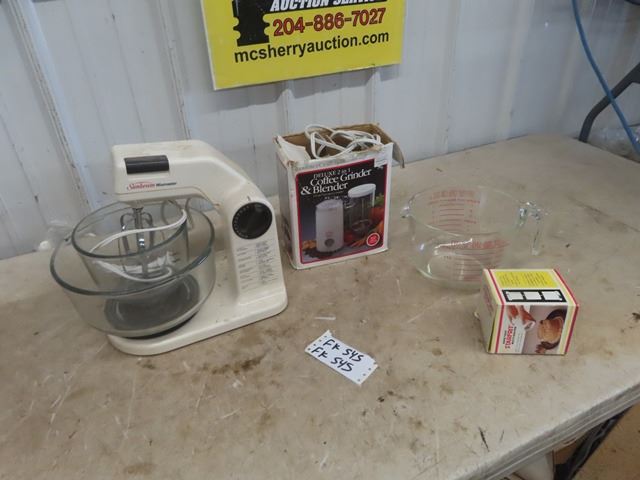 Sunbeam Mix Master, Coffee Grinder, Pyrex Mixing Bowl