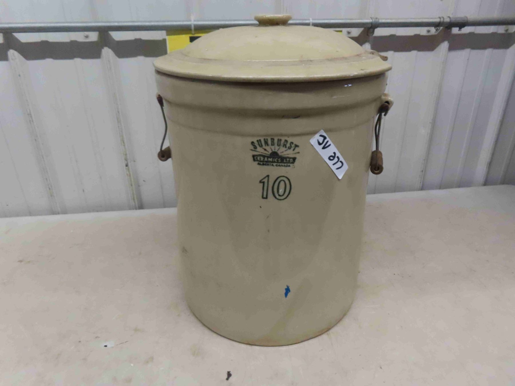 Sunburst 10 Gal Crock with Handles + Lid - lid has chip