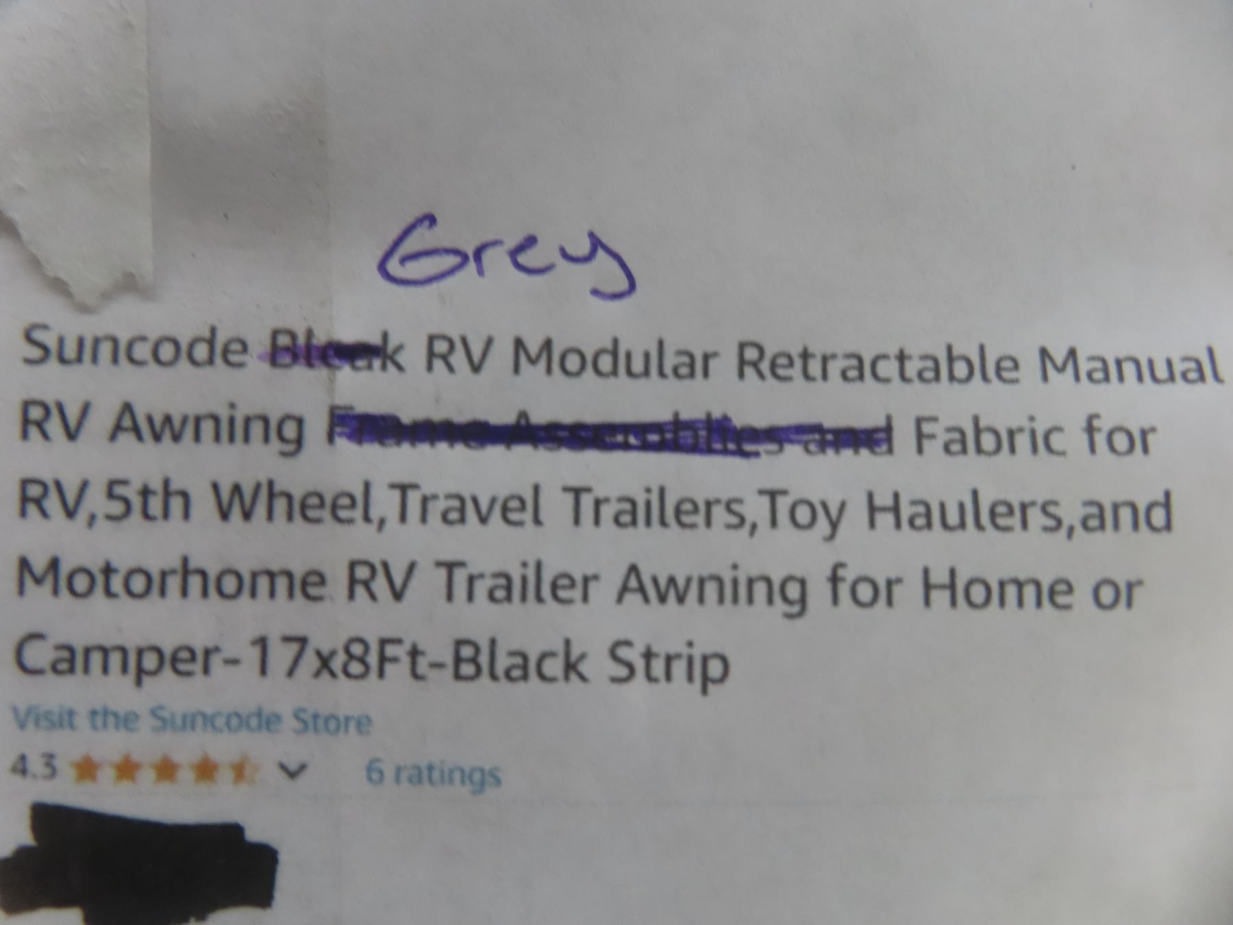 Suncode Grey RV Awning Fabric 17x8 ft, New or Store Return