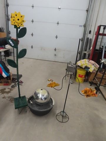 Sunflower Bird House, Metal Flower Ornament & Water Fountain