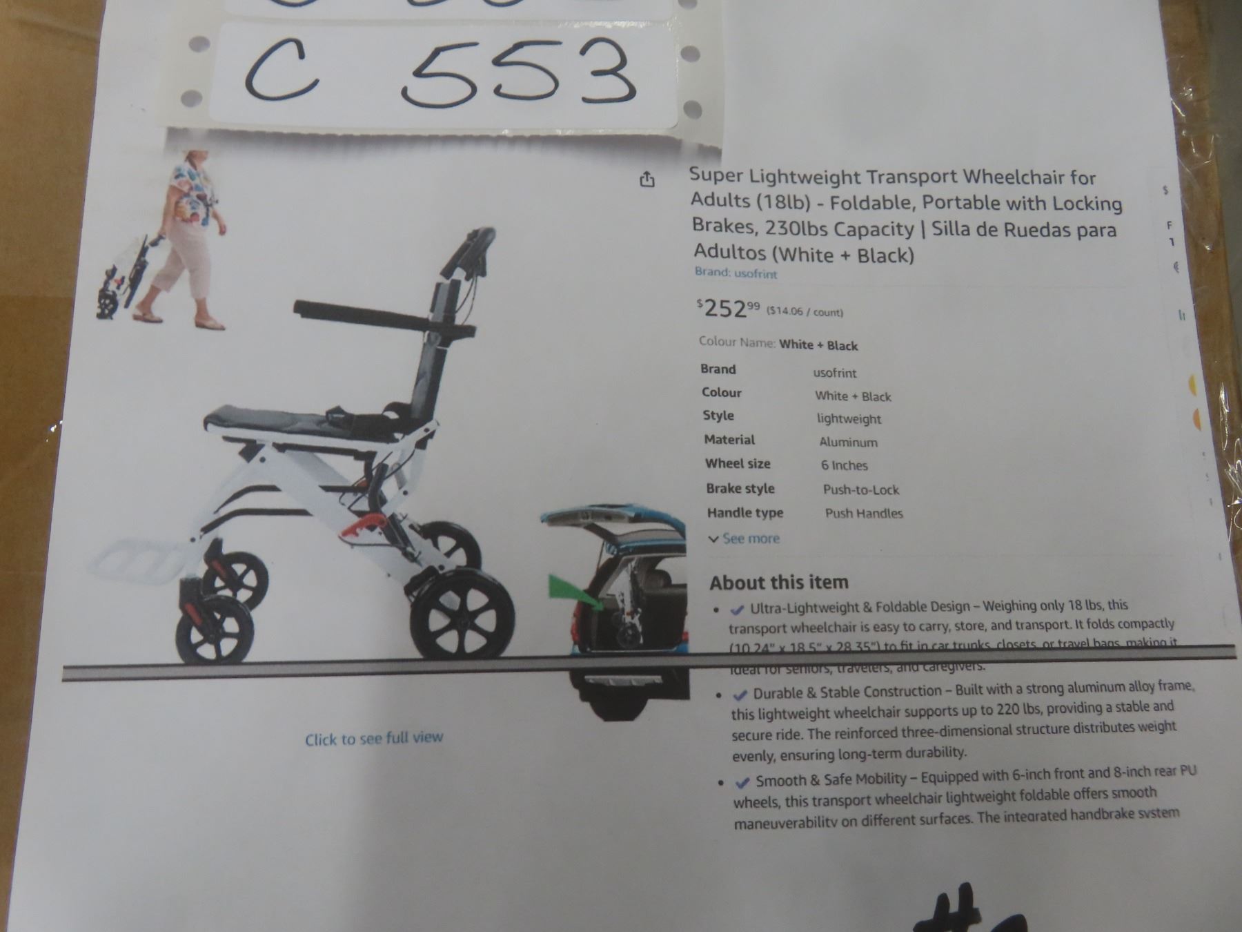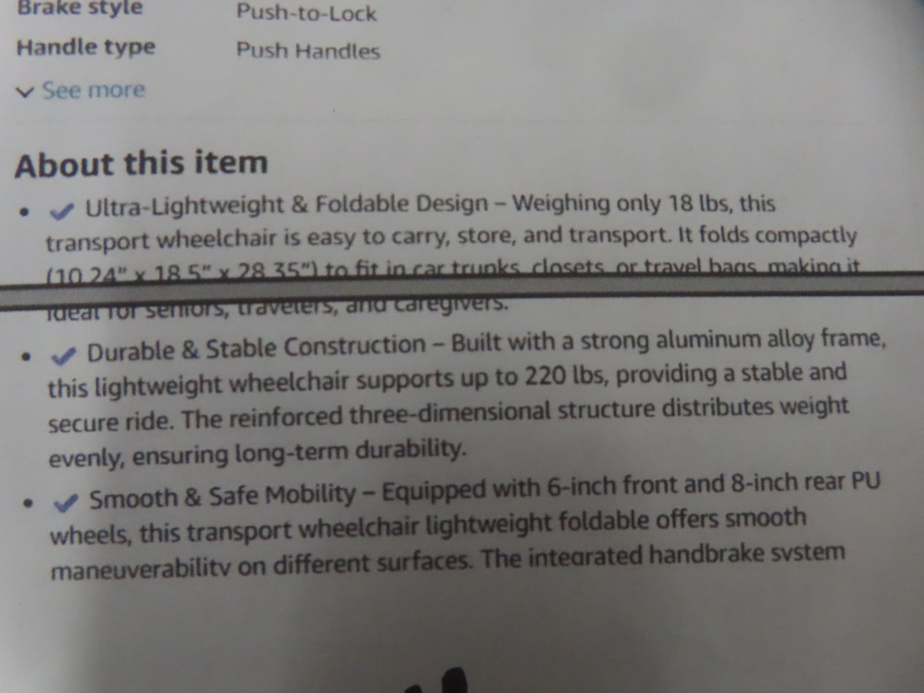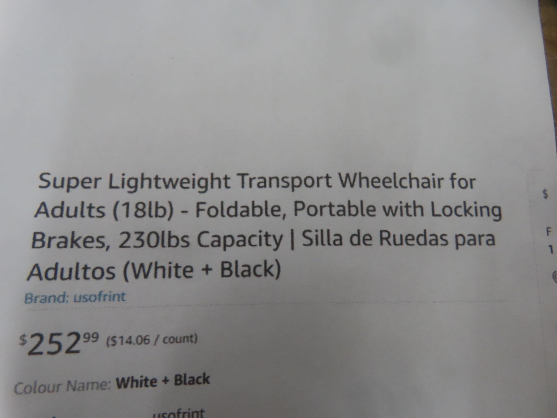 Super Lightweight Transport Wheelchair for Adults (18lb) Foldable, Portable with Locking Brakes, 230lbs Capacity Silla de Ruedas Para Adultos (white and Black)