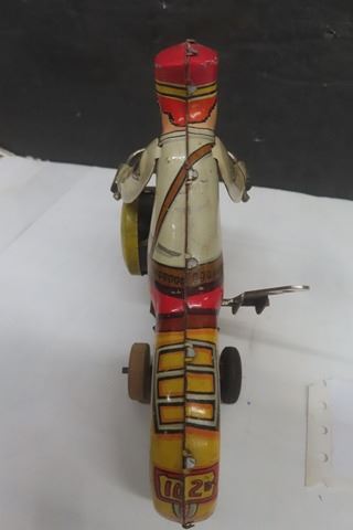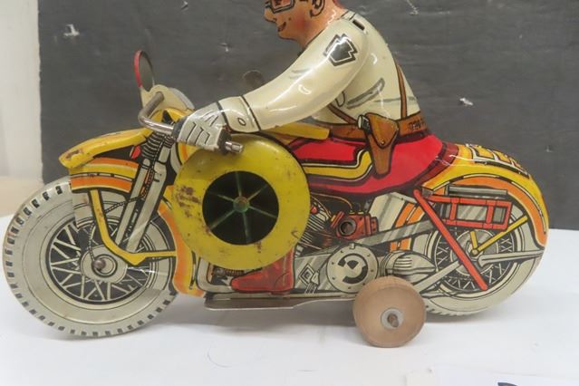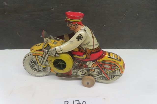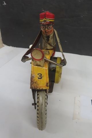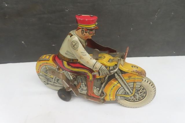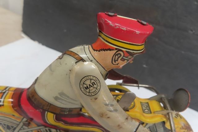 Superb Marx Tin Wind Up Motorcycle with Police Rider - Working Condition