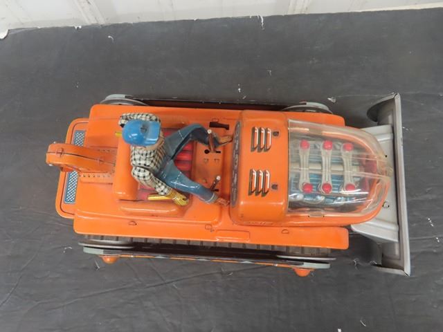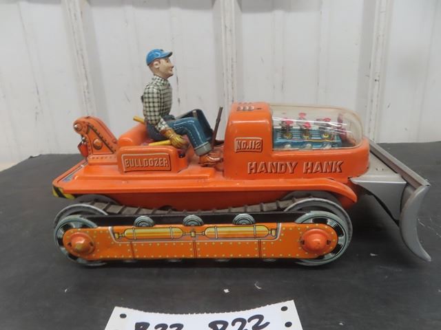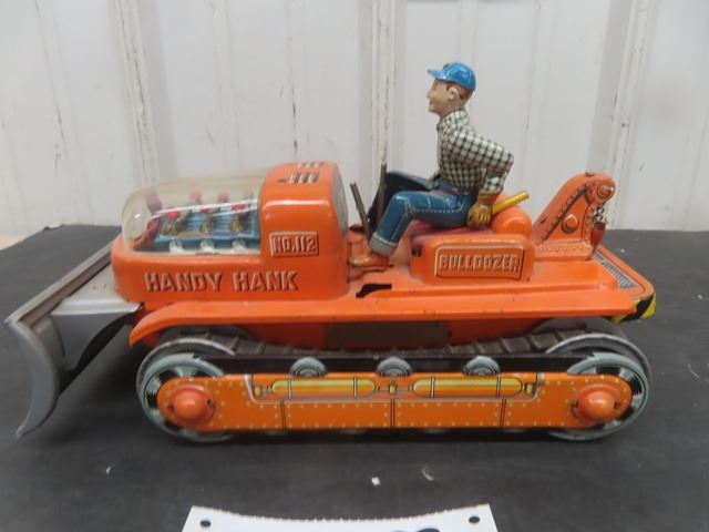 T.N. Tin Made in Japan Battery Handy Hank Bulldozer with Driver 6  x 6.5  x 11.5