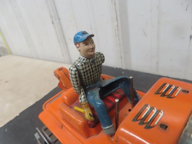 T.N. Tin Made in Japan Battery Handy Hank Bulldozer with Driver 6" x 6.5" x 11.5"