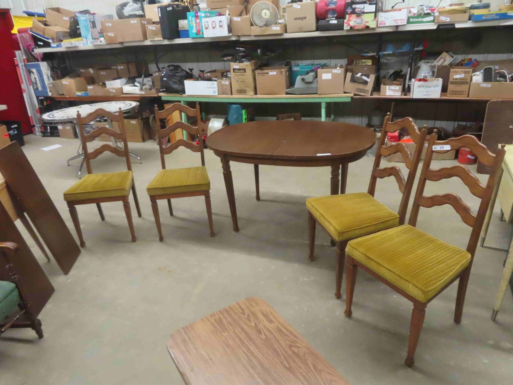Table 30'' x 52'' x 38'' with 2 Leafs 12'' Each + 4 Chairs