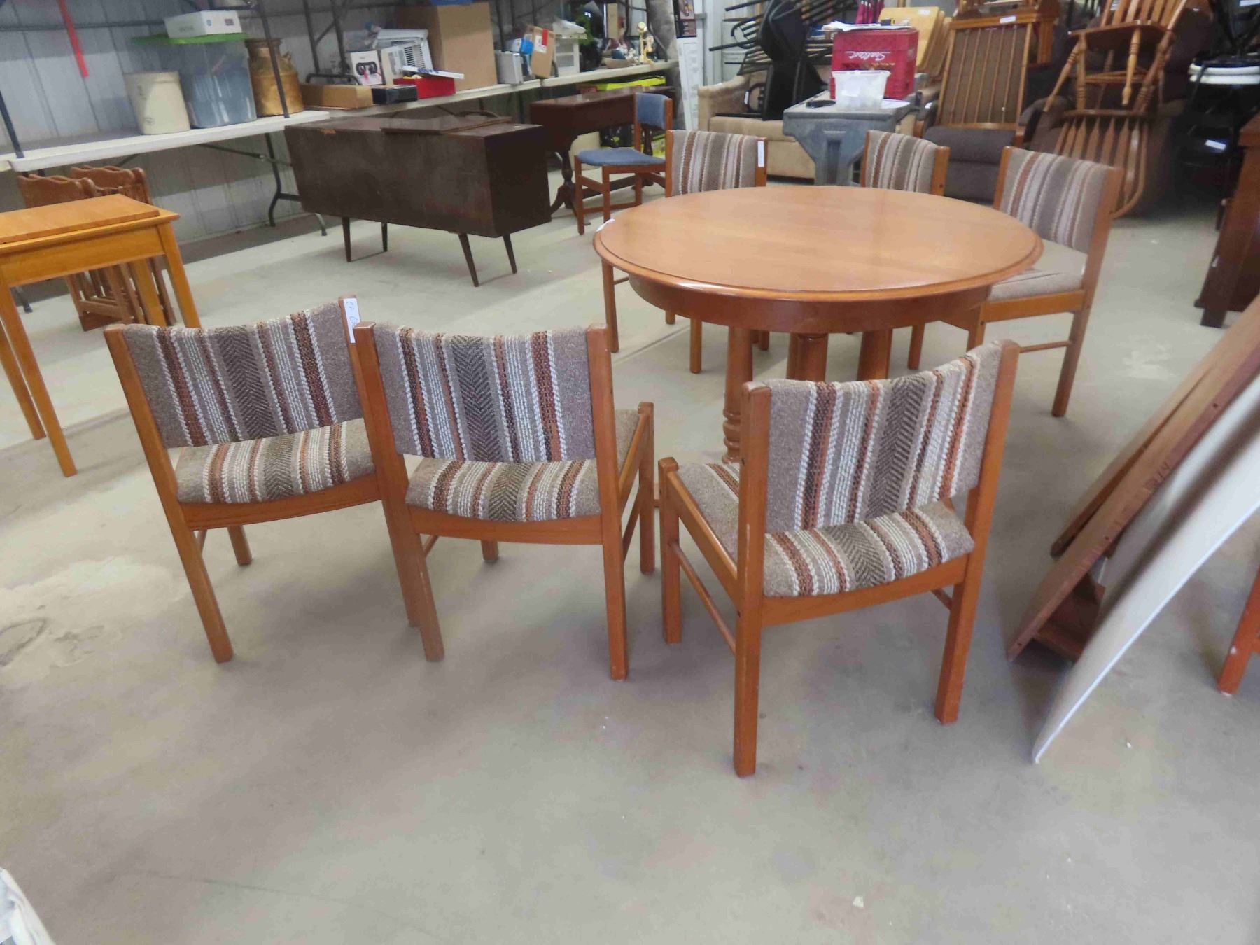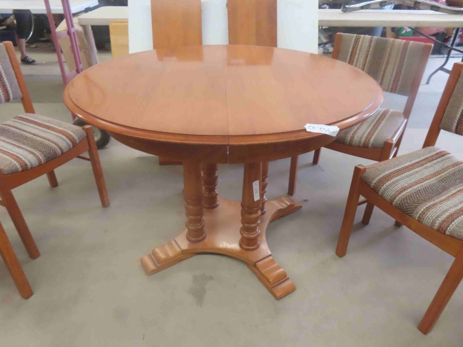 Table 31'' H x 45'' Diam , 2 Leaves & 6 Chairs