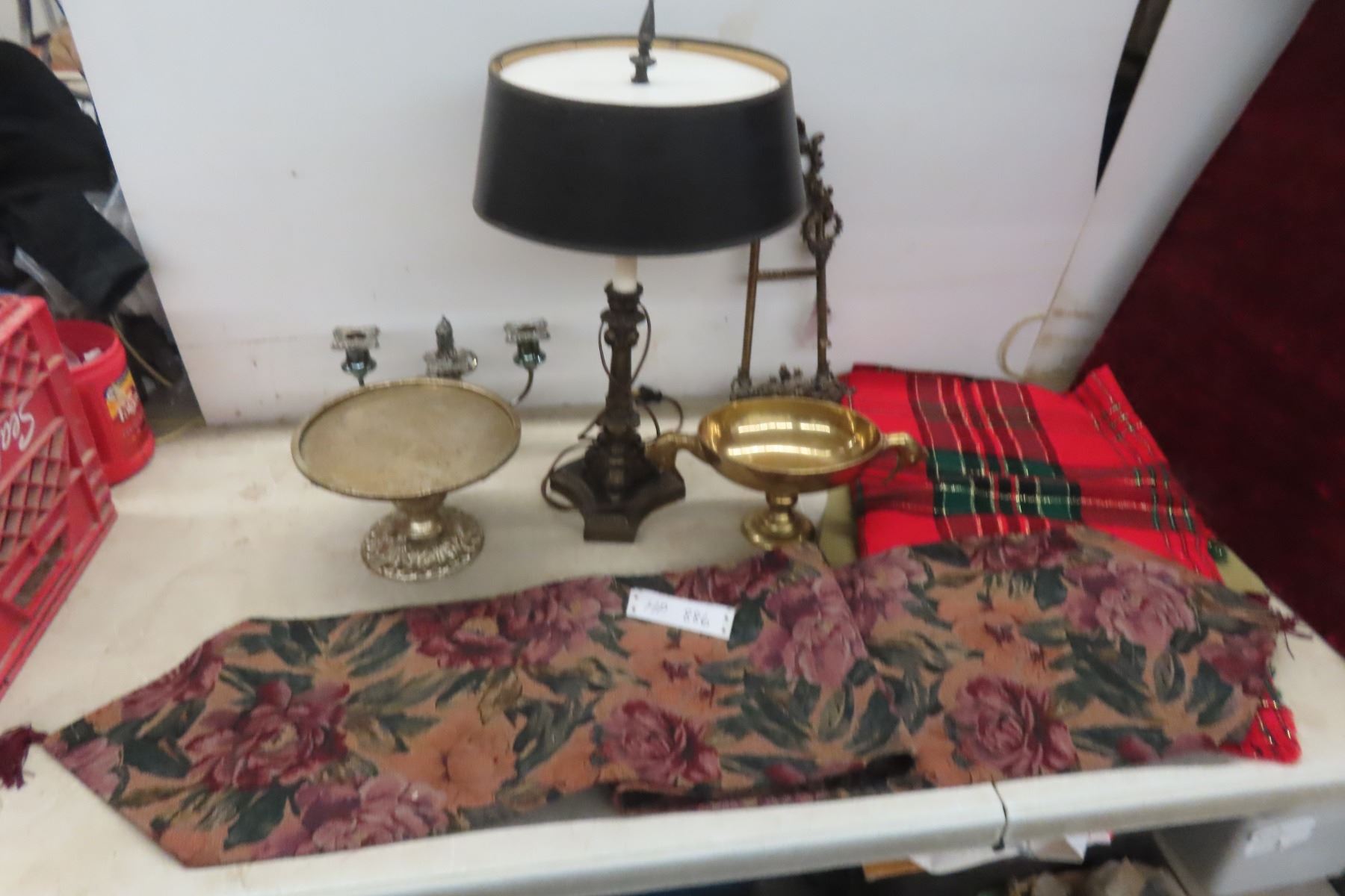 Table Lamp 23''Hm Candelabra, Brass Candy Bowl, Picture Easel, Christmas Table Cloth and Table Runner