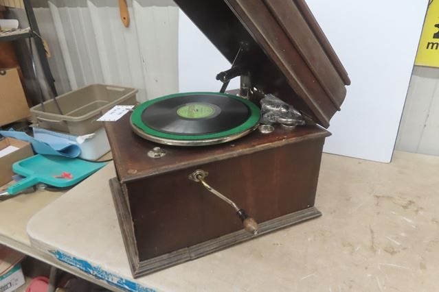 Table Top Gramophone - Cranks + Spins , Tone Arm in Disassembled