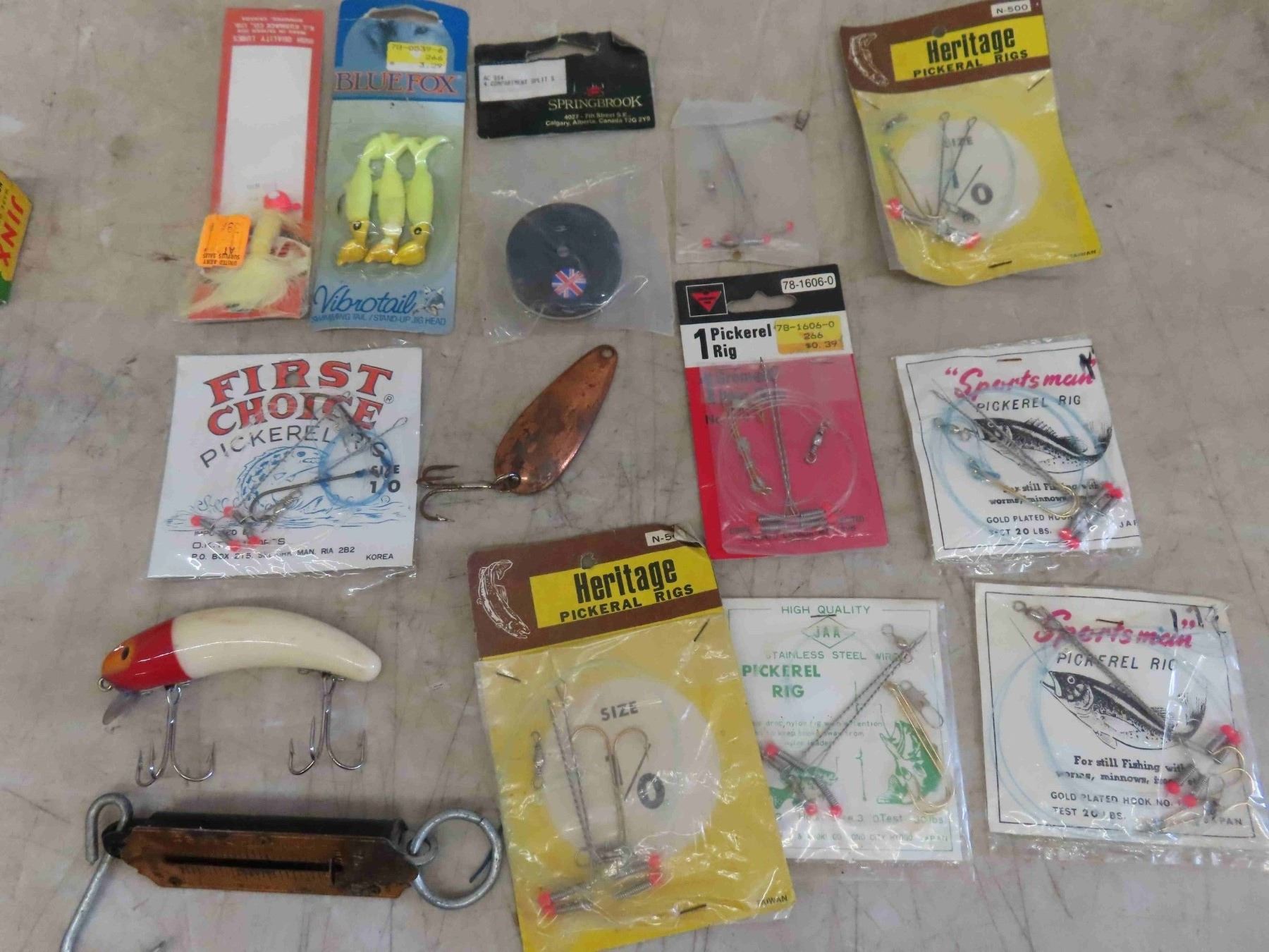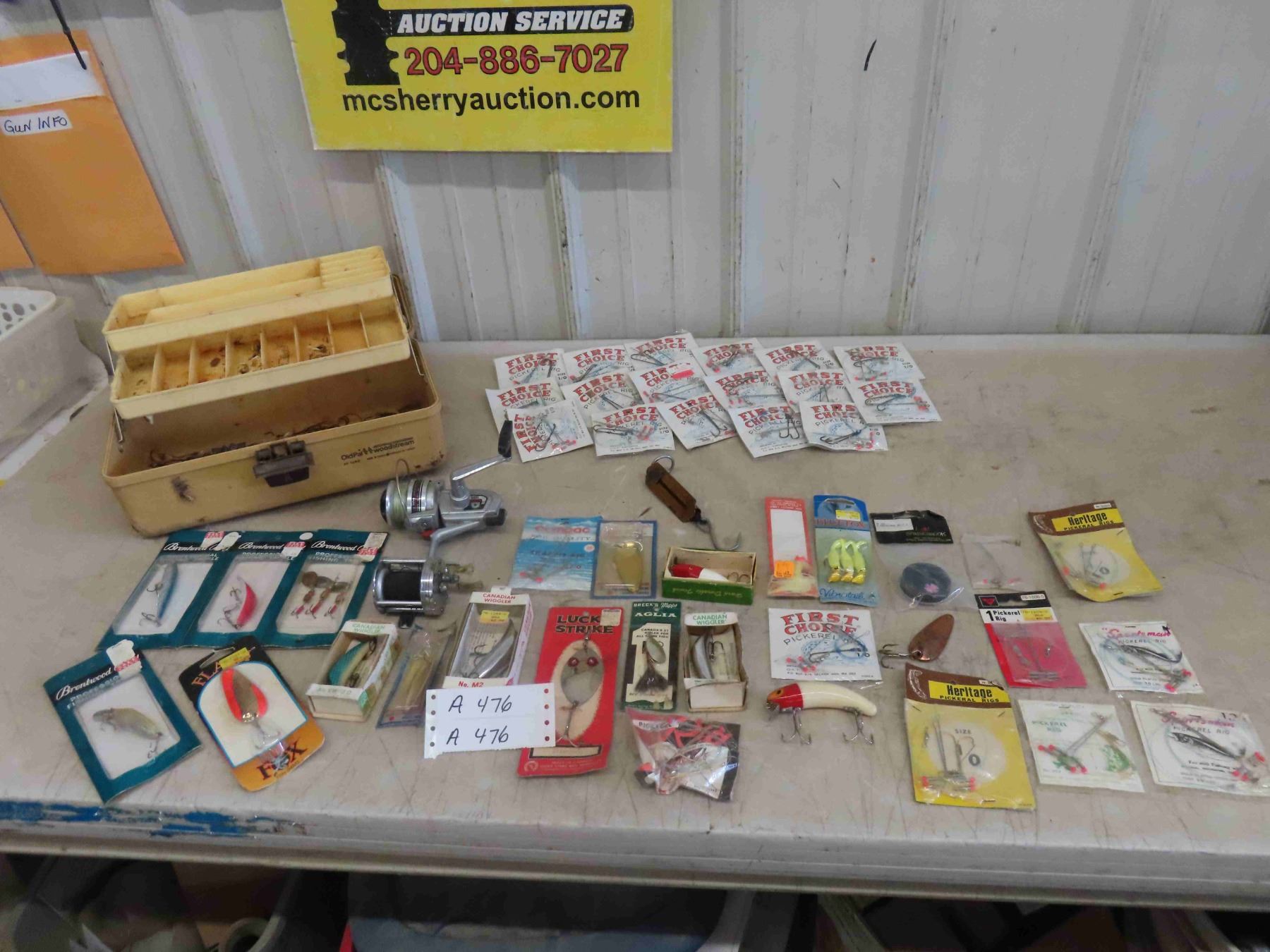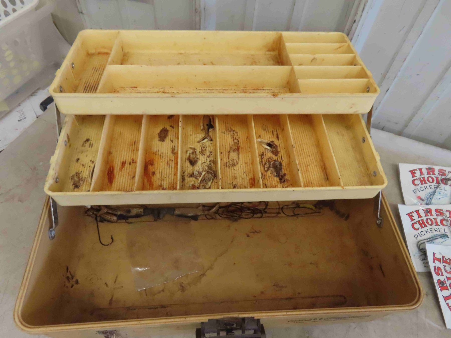 Tackle Box with 2 Reels, New Old Stock Lures, Pickeral Rigs & More