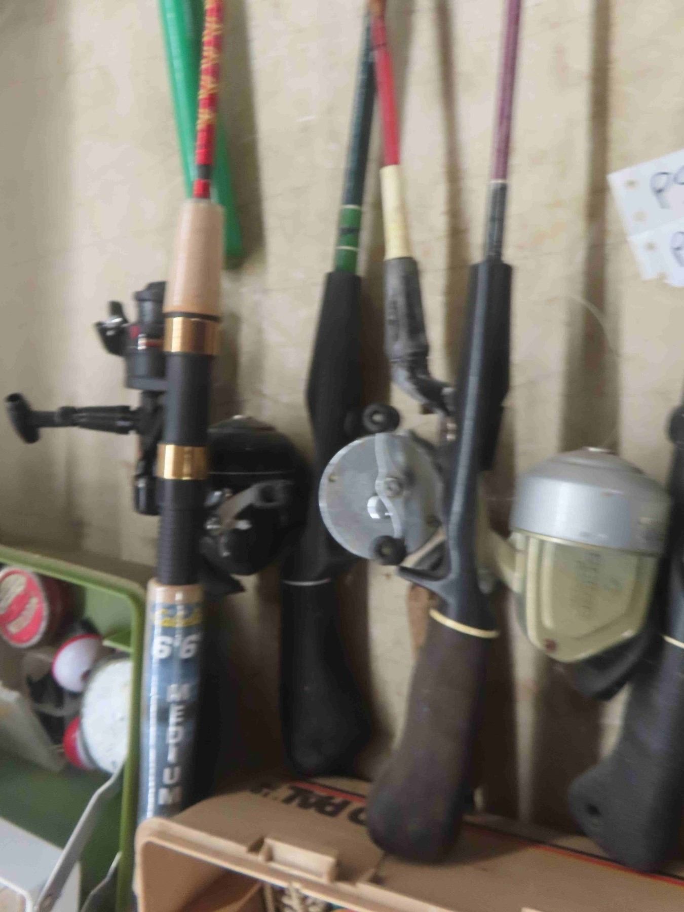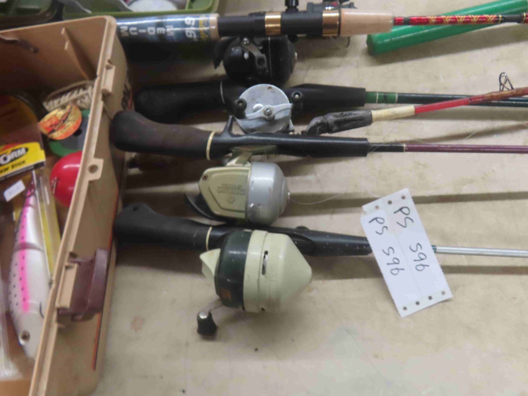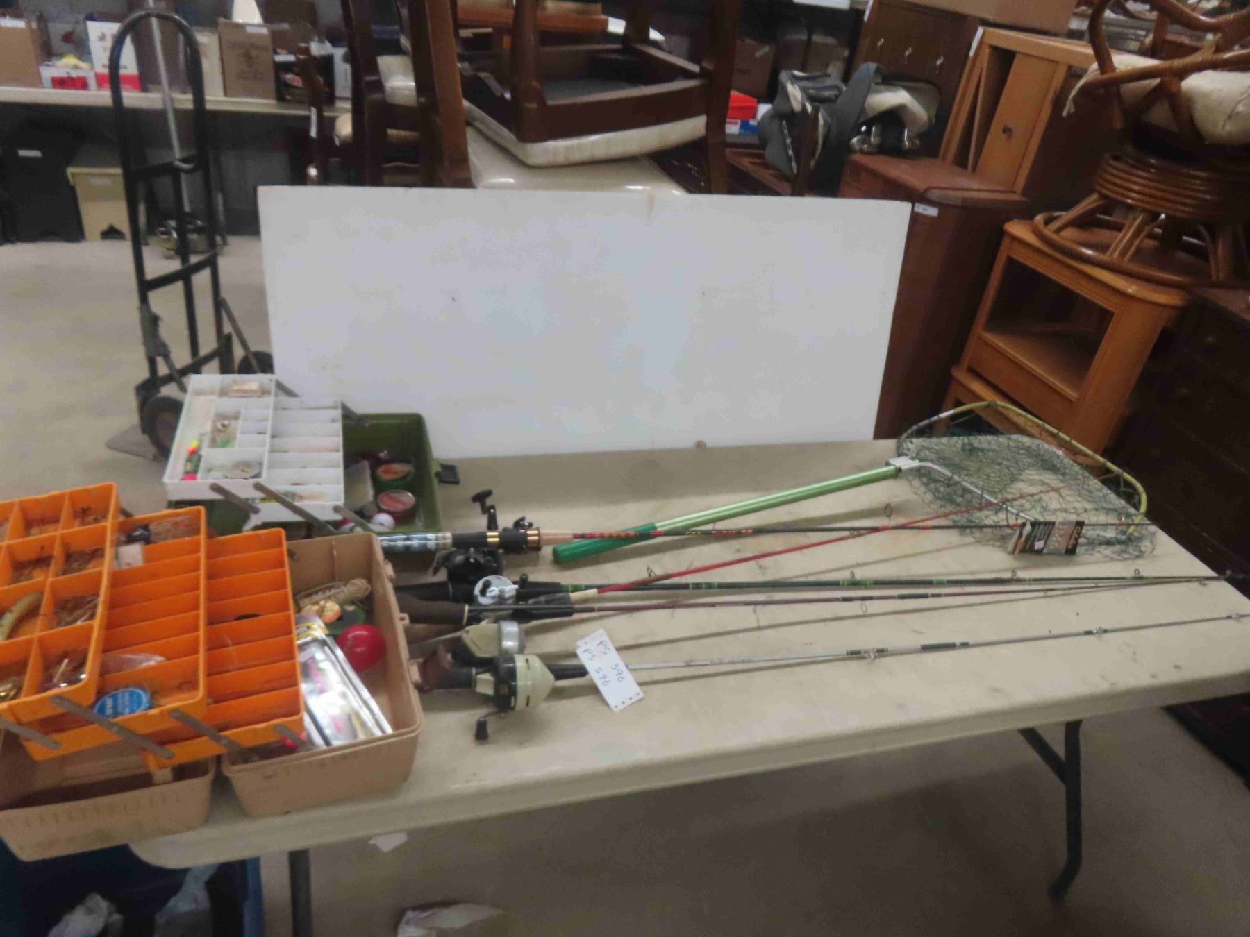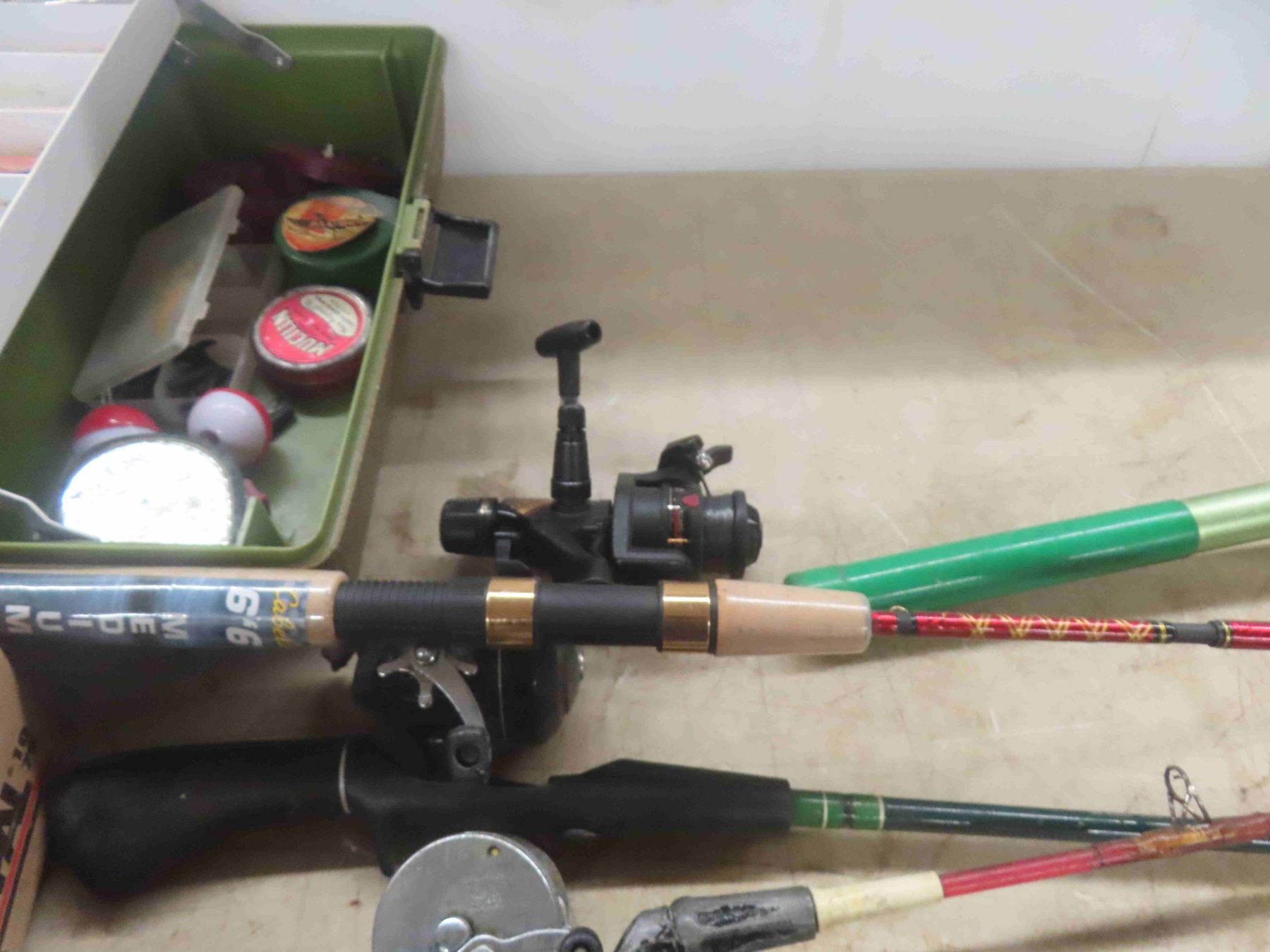 Tackle Box with Hooks, Line, Lures, 5 Fishing Rods, Fishing Net, Reels