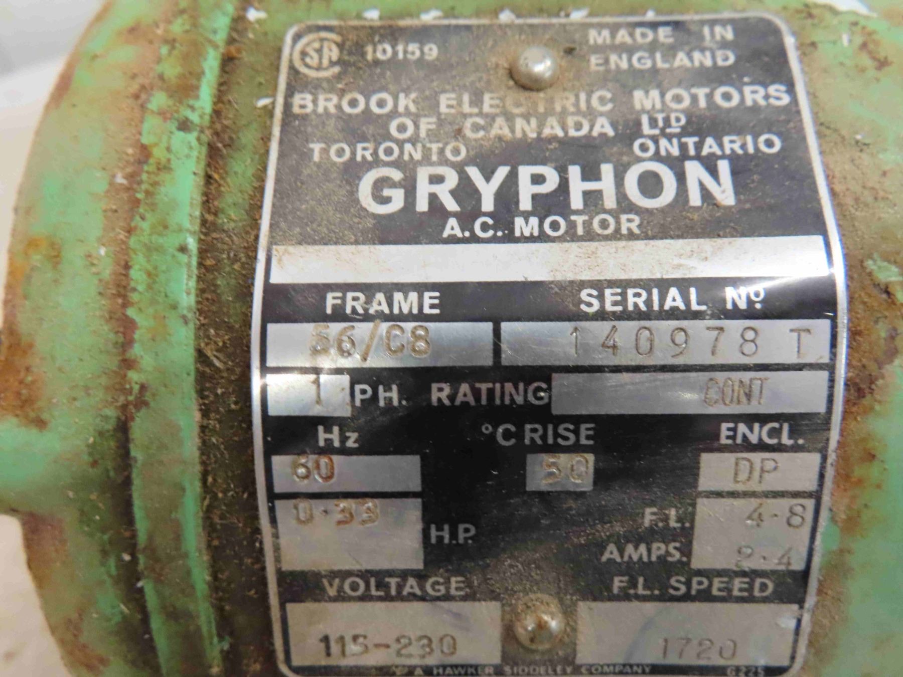 Tamper Electric Motor 1/4HP , Gryphone .33 HP Electric Motor