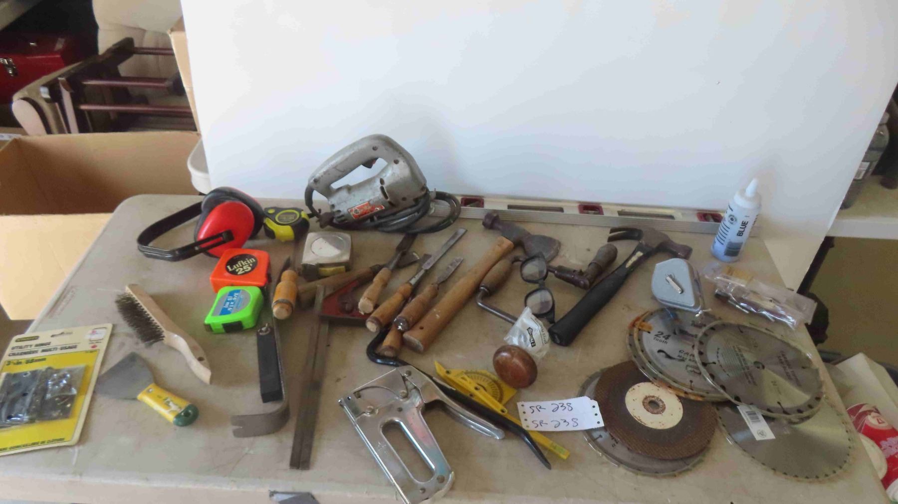 Tape Measure, Hammers, Circular Saw Blades, Wood Chisel, Level, Plus