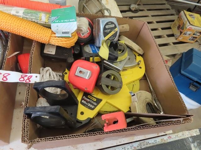 Tape Measures, Chalk Line, Rope, Nylon Rope, Fuel Caps, Caulking, Various Hardware, Plus