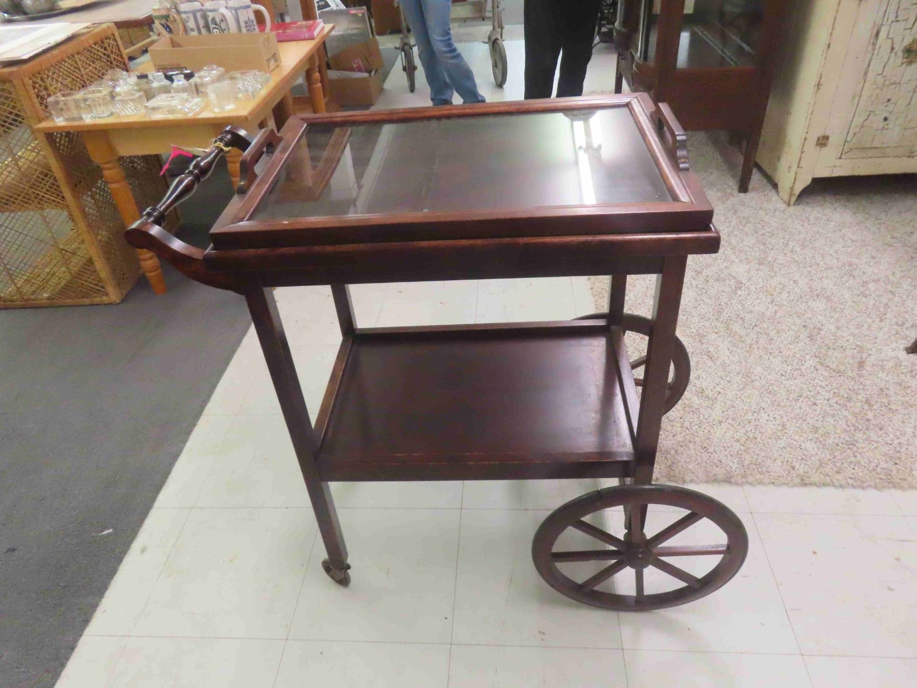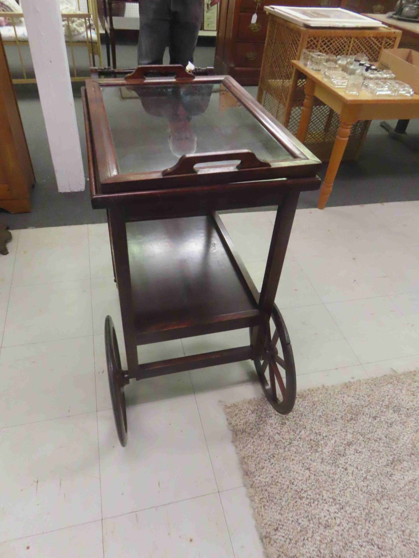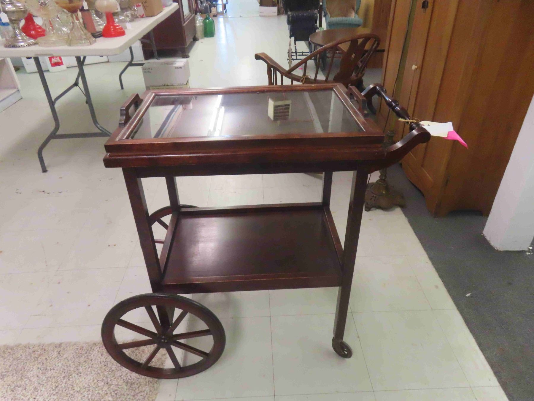 Tea Wagon - Mahogony with Removeable Top Glass + Tray