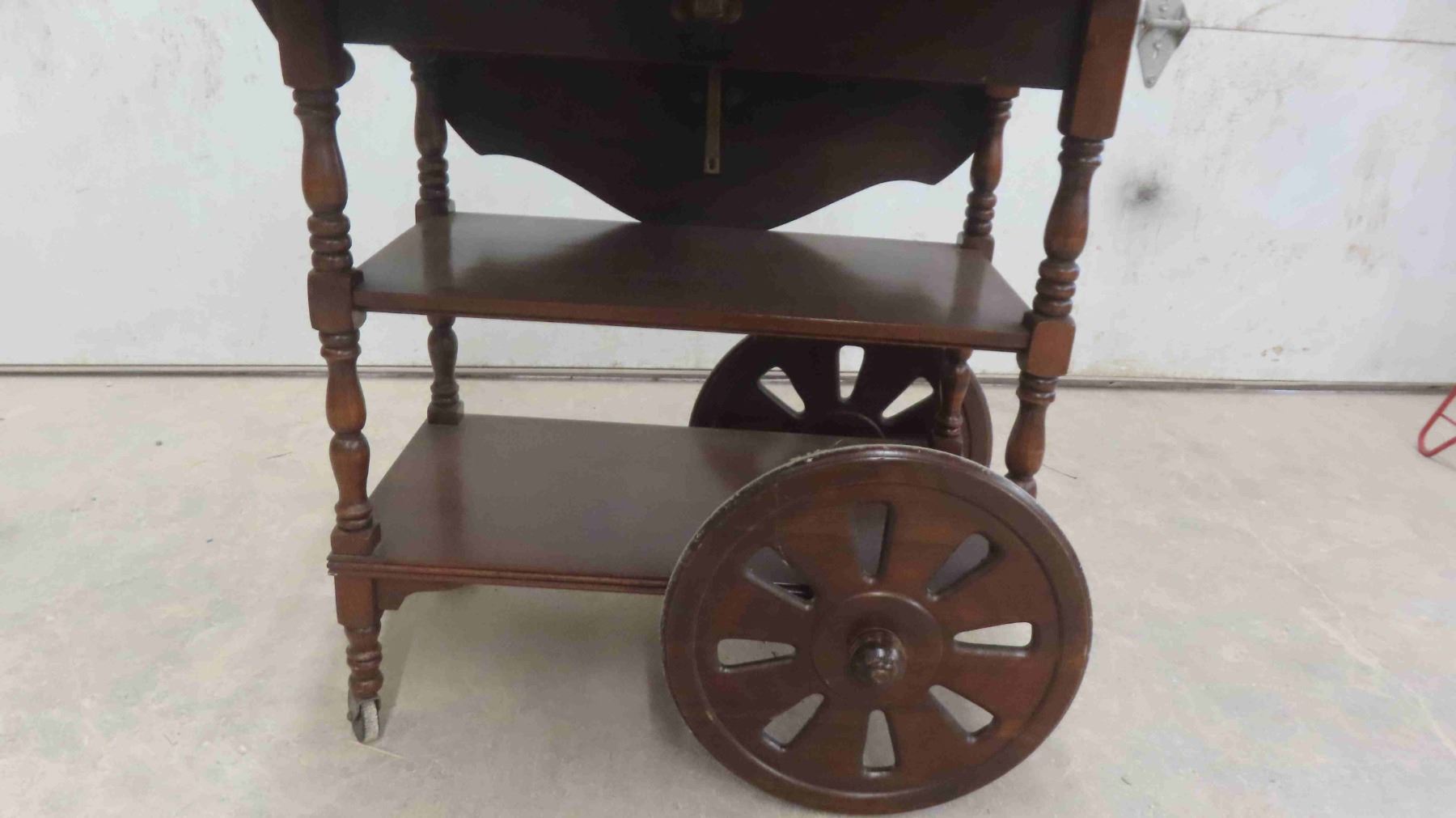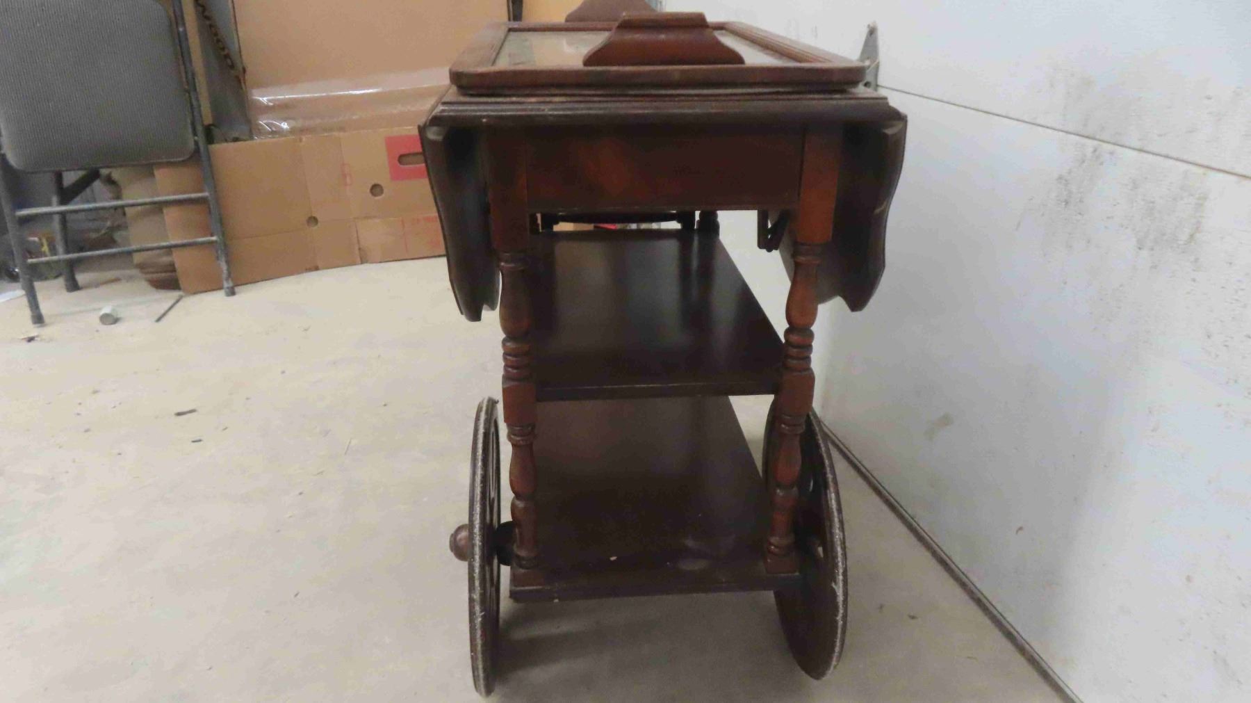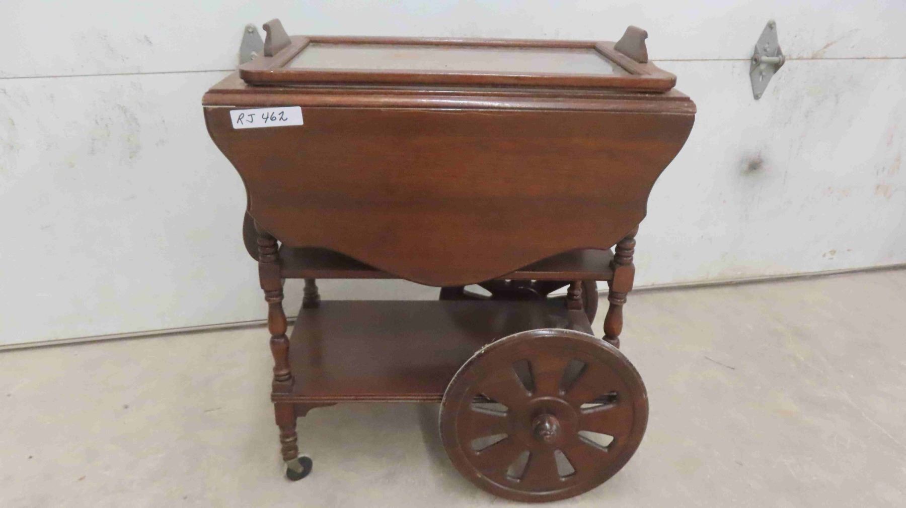 Tea Wagon with Wood/Glass Serving Tray 25'' x 16'' x 28'' H with 2 Drop Leafs Each 11''