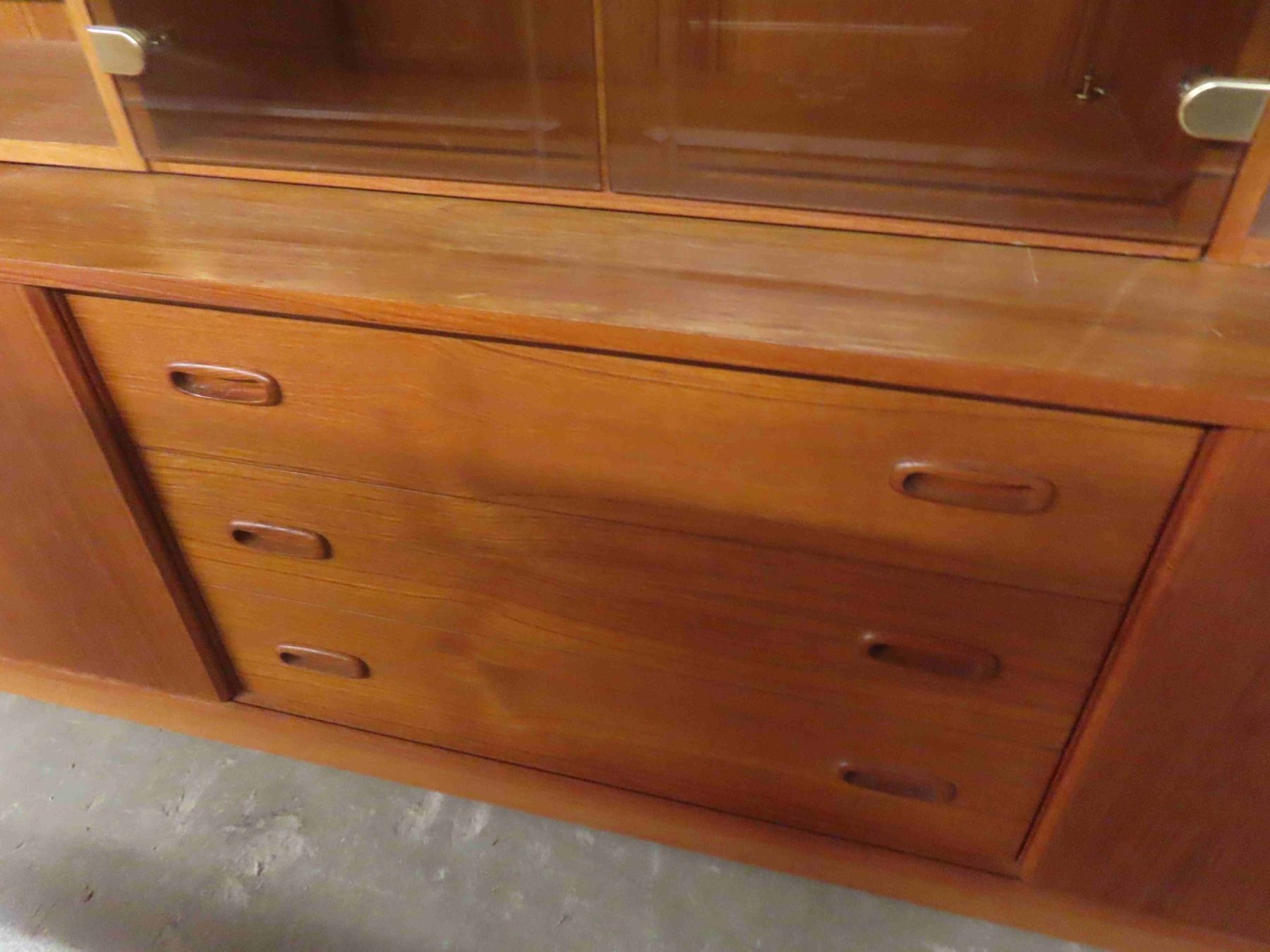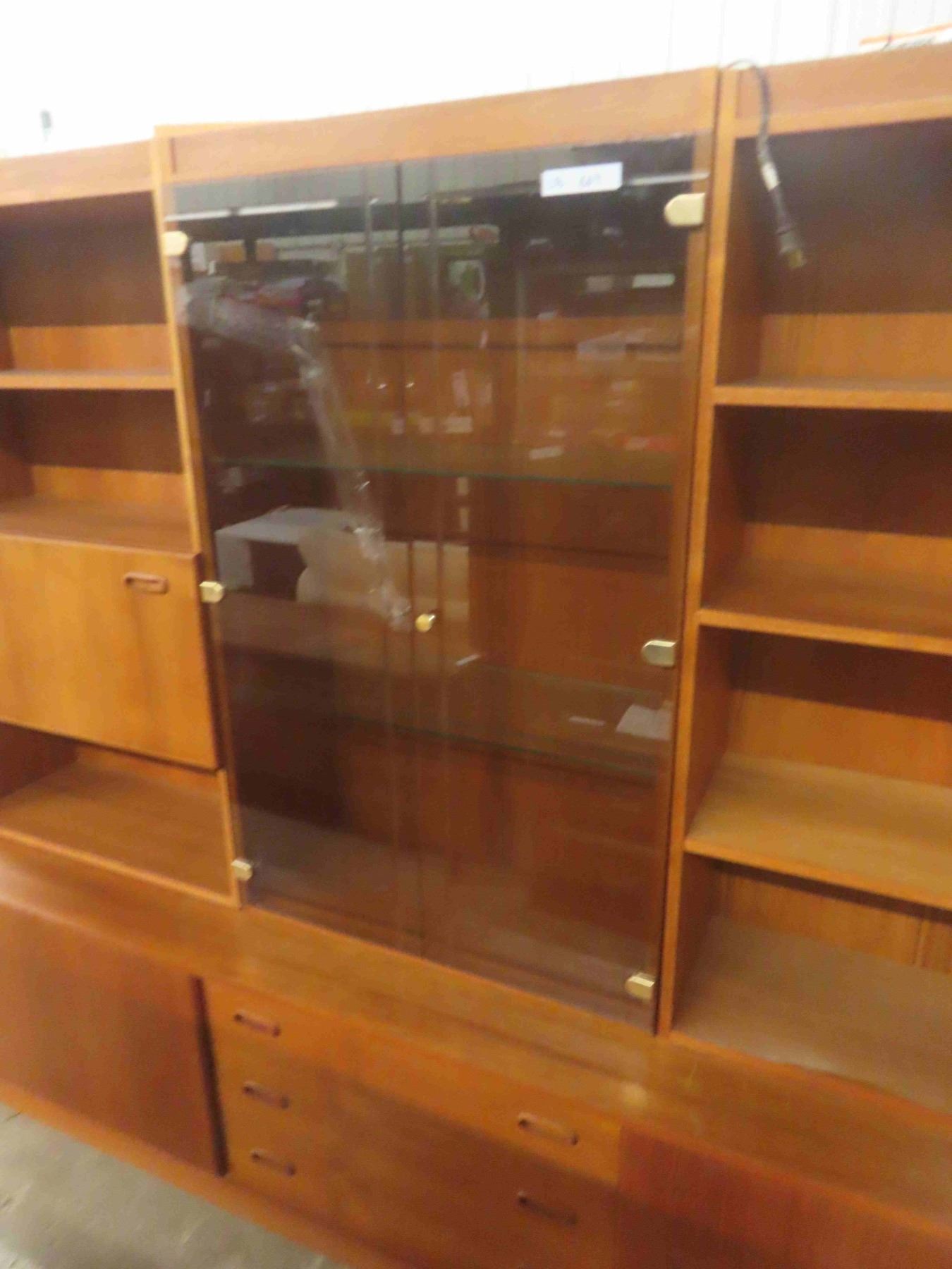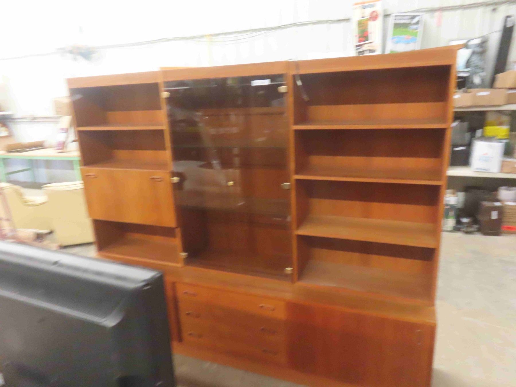 Teak 3pce Entertainment Stand 71 1/2'' x 18'' x 88'' (Glass is Cracked)