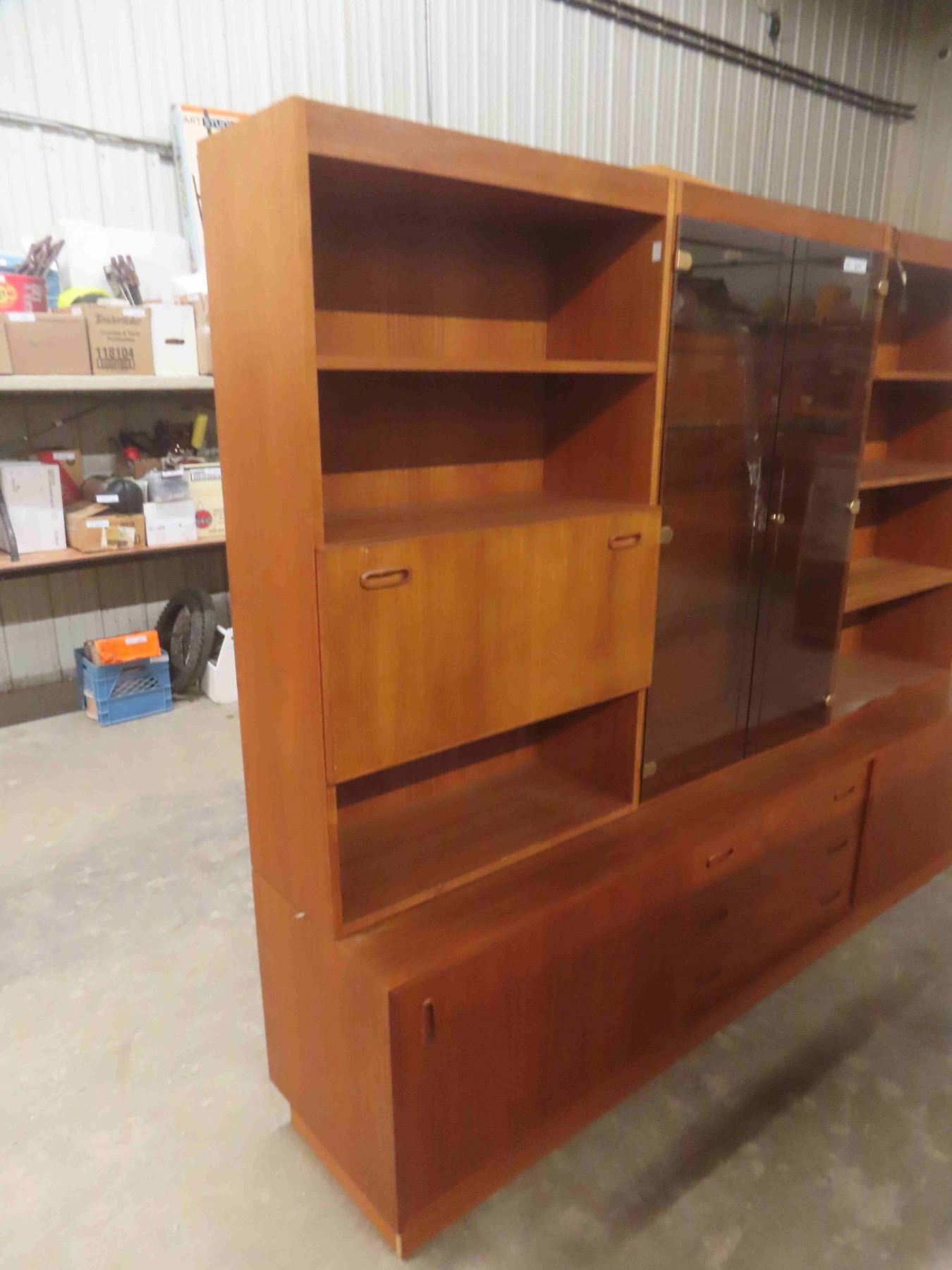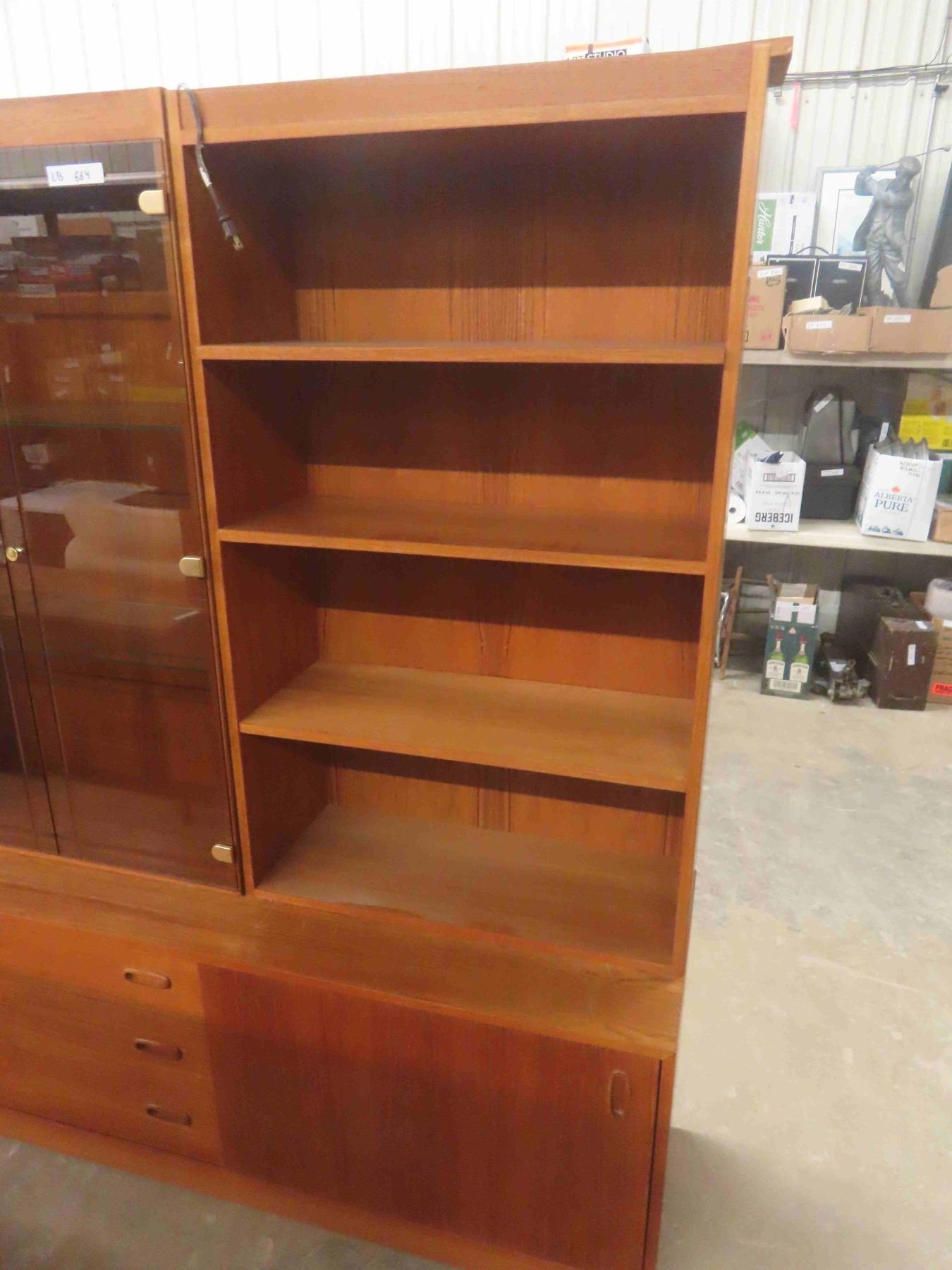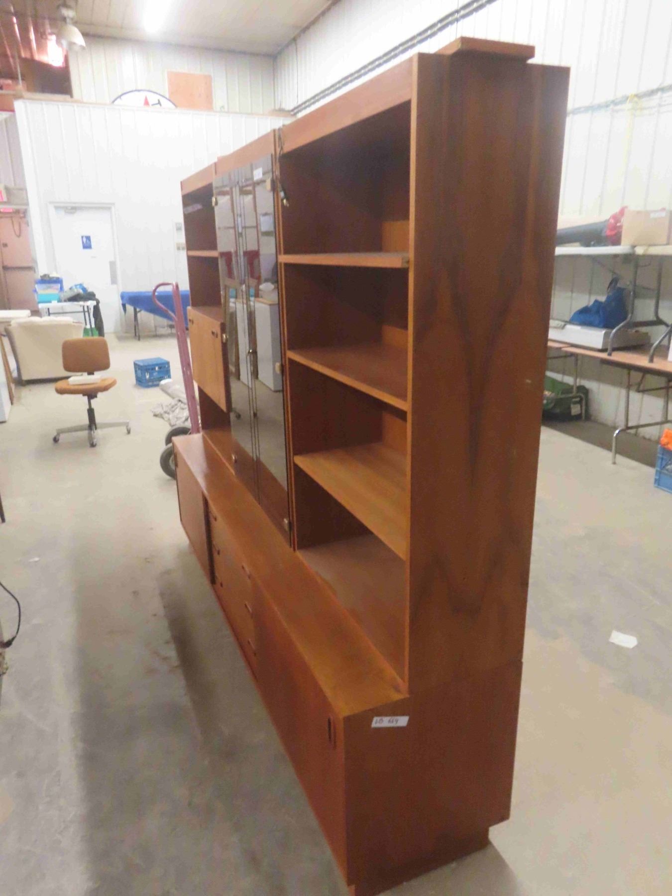 Teak 3pce Entertainment Stand 71 1/2'' x 18'' x 88'' (Glass is Cracked)