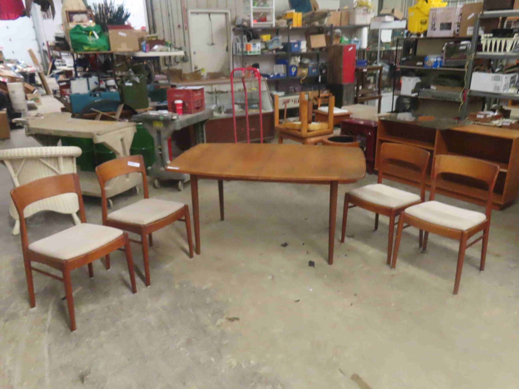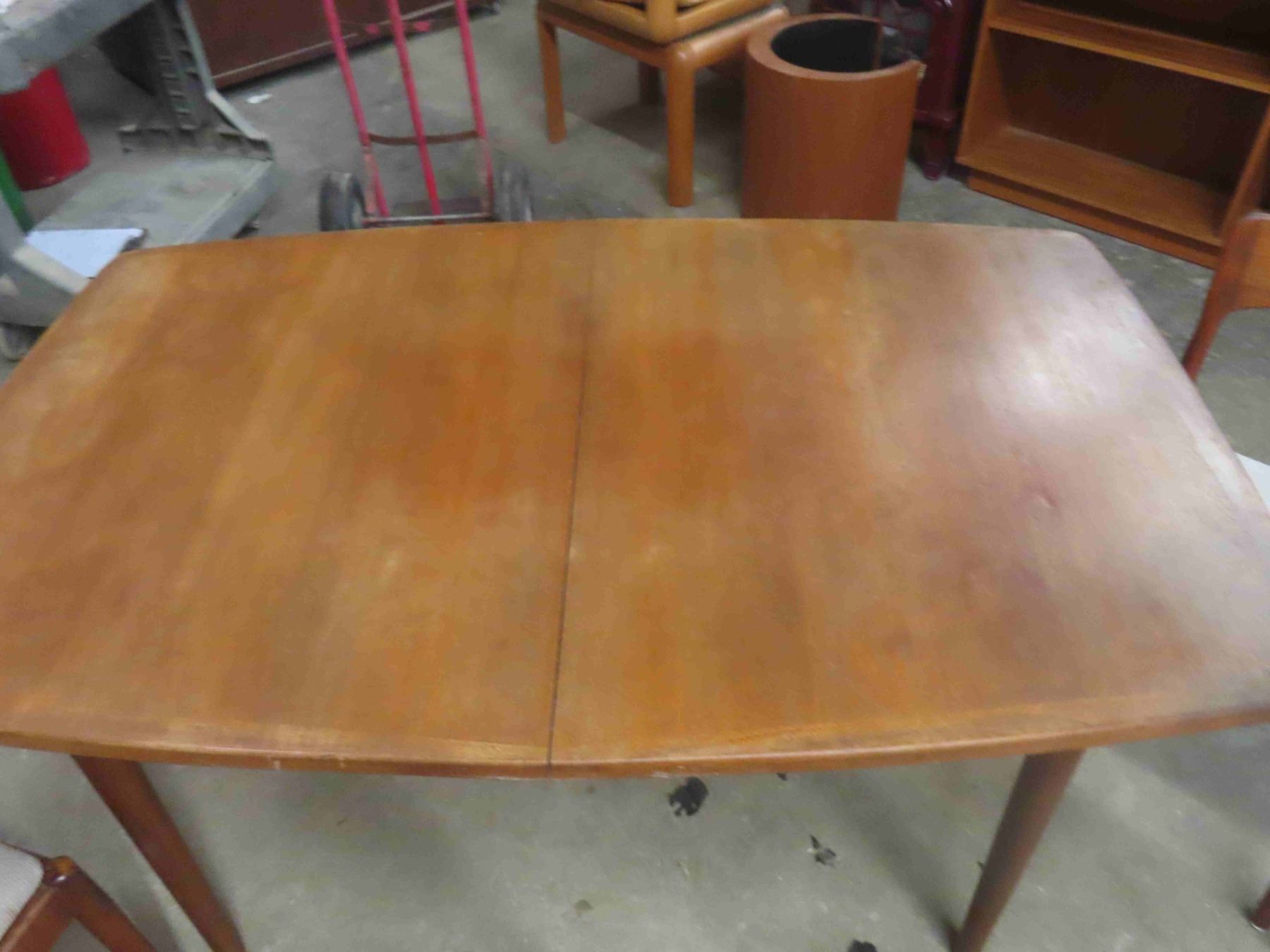 Teak Table 29" x 38" x 59" plus (2) 18" Leaves & 4 Chairs - 1 has stain