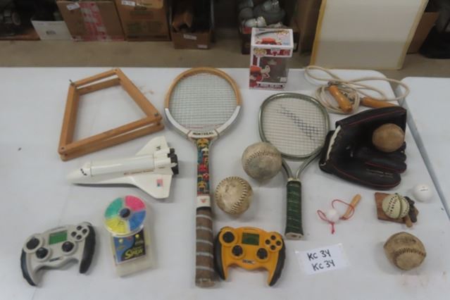 Tennis + Racquetball Rackets, Baseball Glove + Balls, Hand Held Games, Funko Pop, plus more