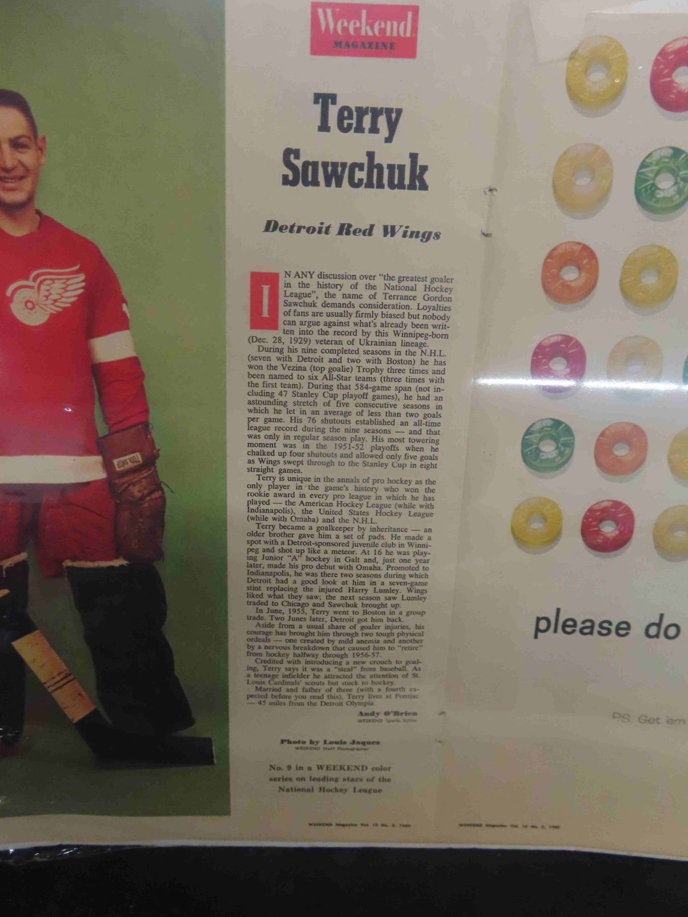 Terry Sawchuk Picture + 1960 Magazine Pages Display 15'' x 22''