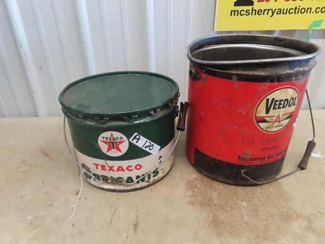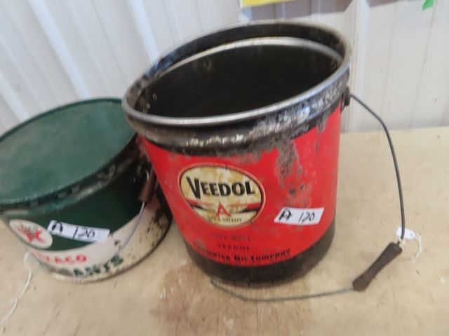 Texaco 25L Grease Pail w Lid & Veedol Grease Pail