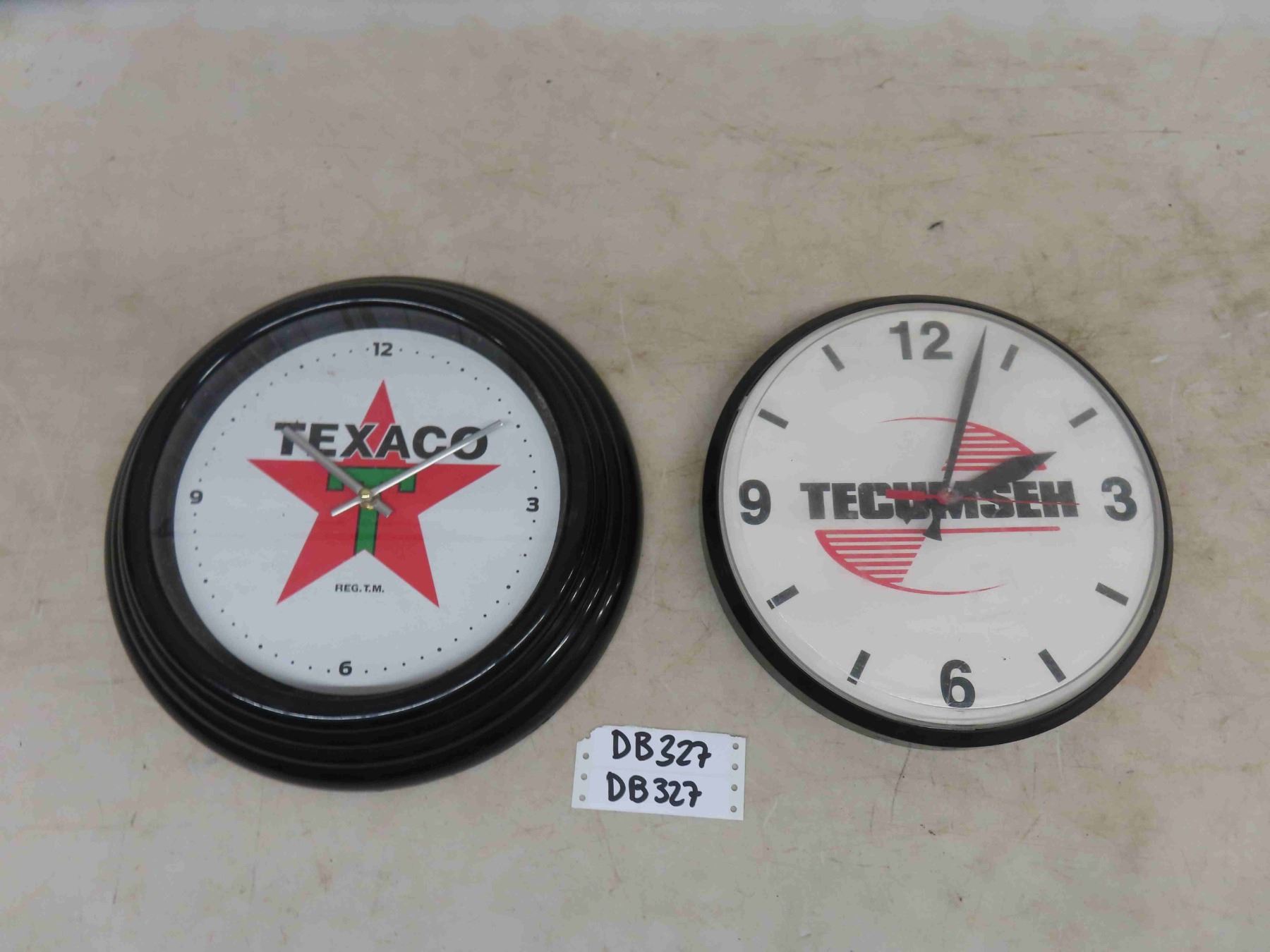 Texaco + Tecumseh Engines Round Plastic Battery Operated Clocks- 12" & 14" - Not Tested