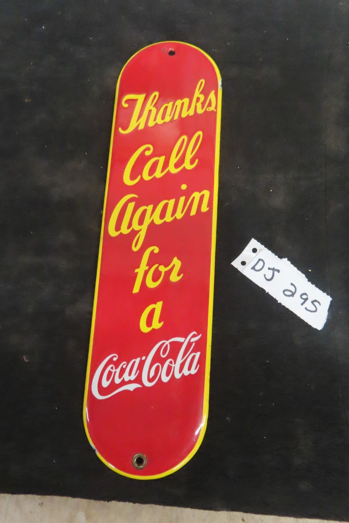 Thanks Call Again for a Coca Cola Porcelain Palm Press 3 1/2'' x 13 1/2''