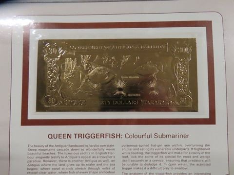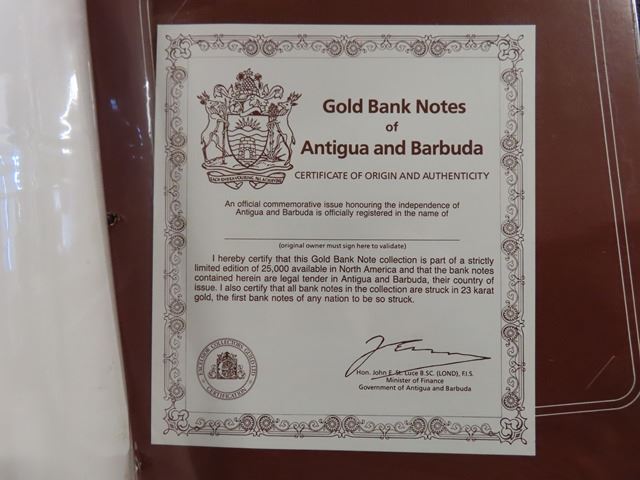 The Gold Bank Notes of Antigua + Barbuda - 23 Total, 1 Per Page - 23K Gold Notes