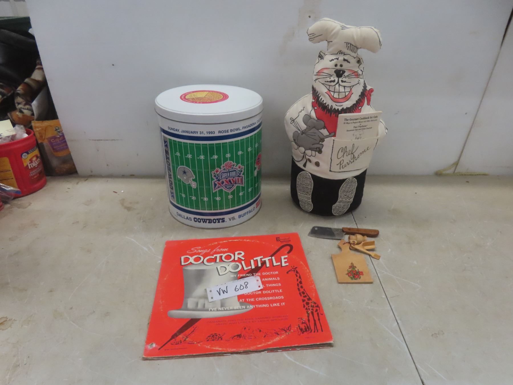 The Gourmet Cookbook For Cats; Dr. Dolittle Album; And A Dallas Cowboys Tin.