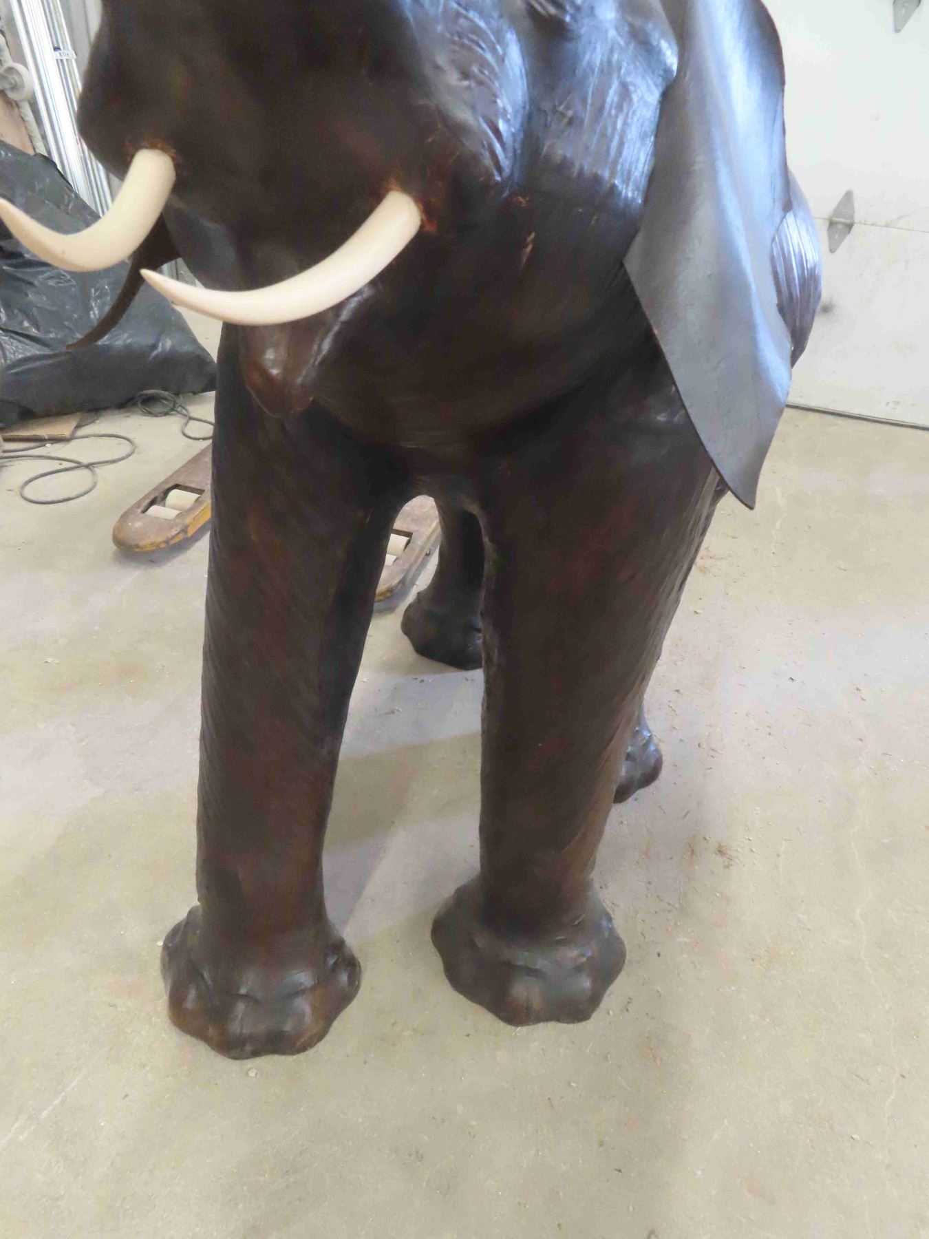 The Grandaddy of Ornamental Elephants -Leather Covered - Full on Blowing Trunk Mode , Tusks 20" x 55" x 66" to Top of Trunk