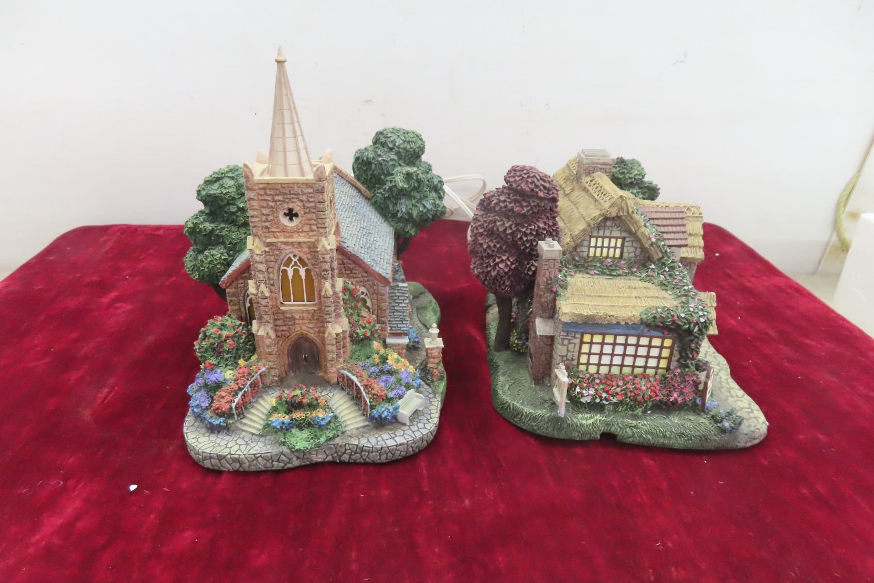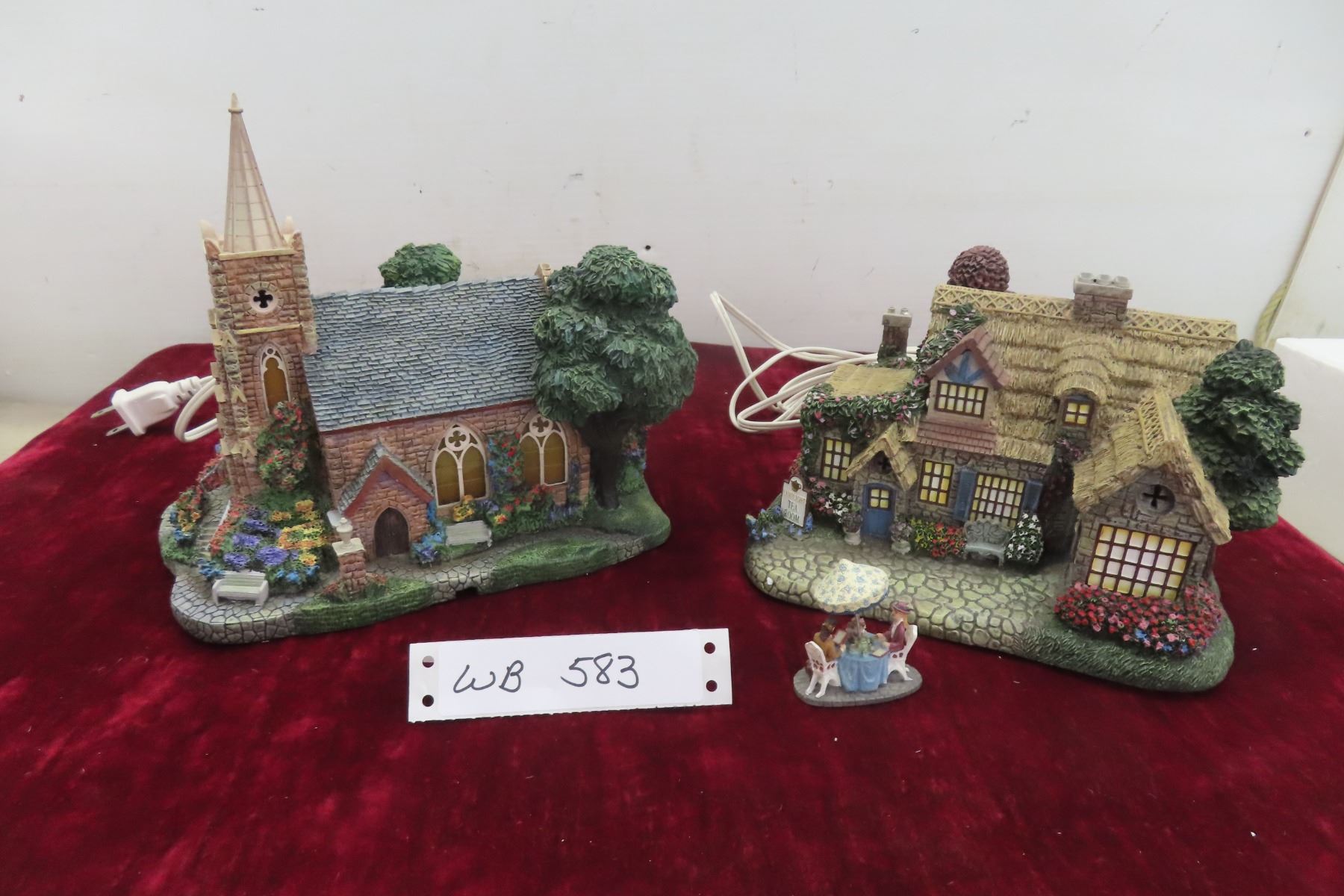 Thomas Kincade Lamplight Village Collection Windermere Church 1999 + Lamplight Tea Room 2000