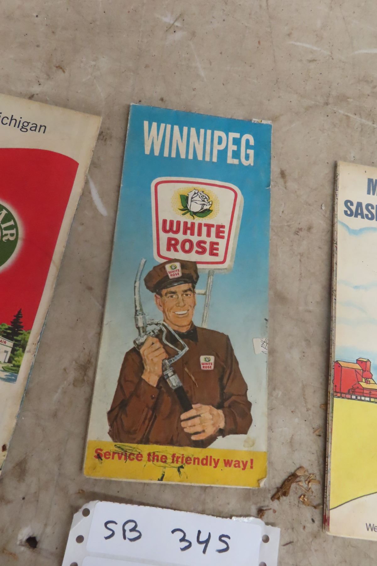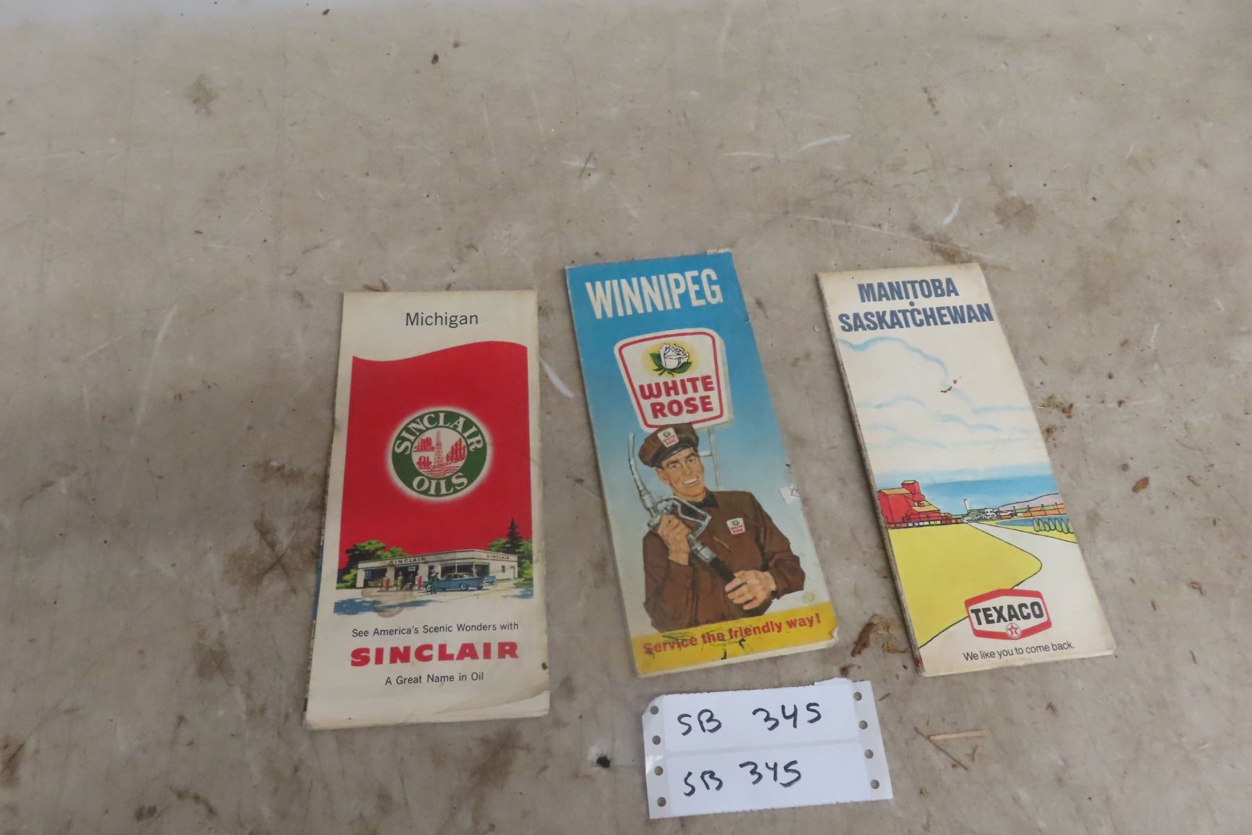 Three Vintage Road Maps: Texaco Manitoba/Saskatchewan; White Rose Winnipeg; Sinclair Michigan