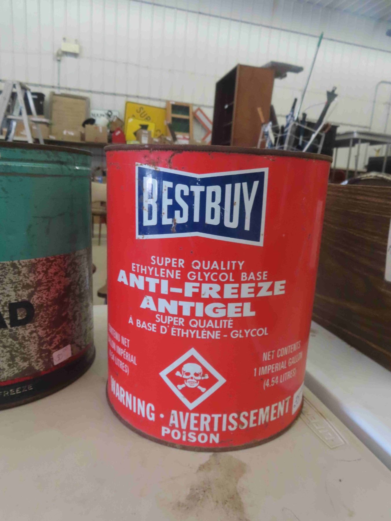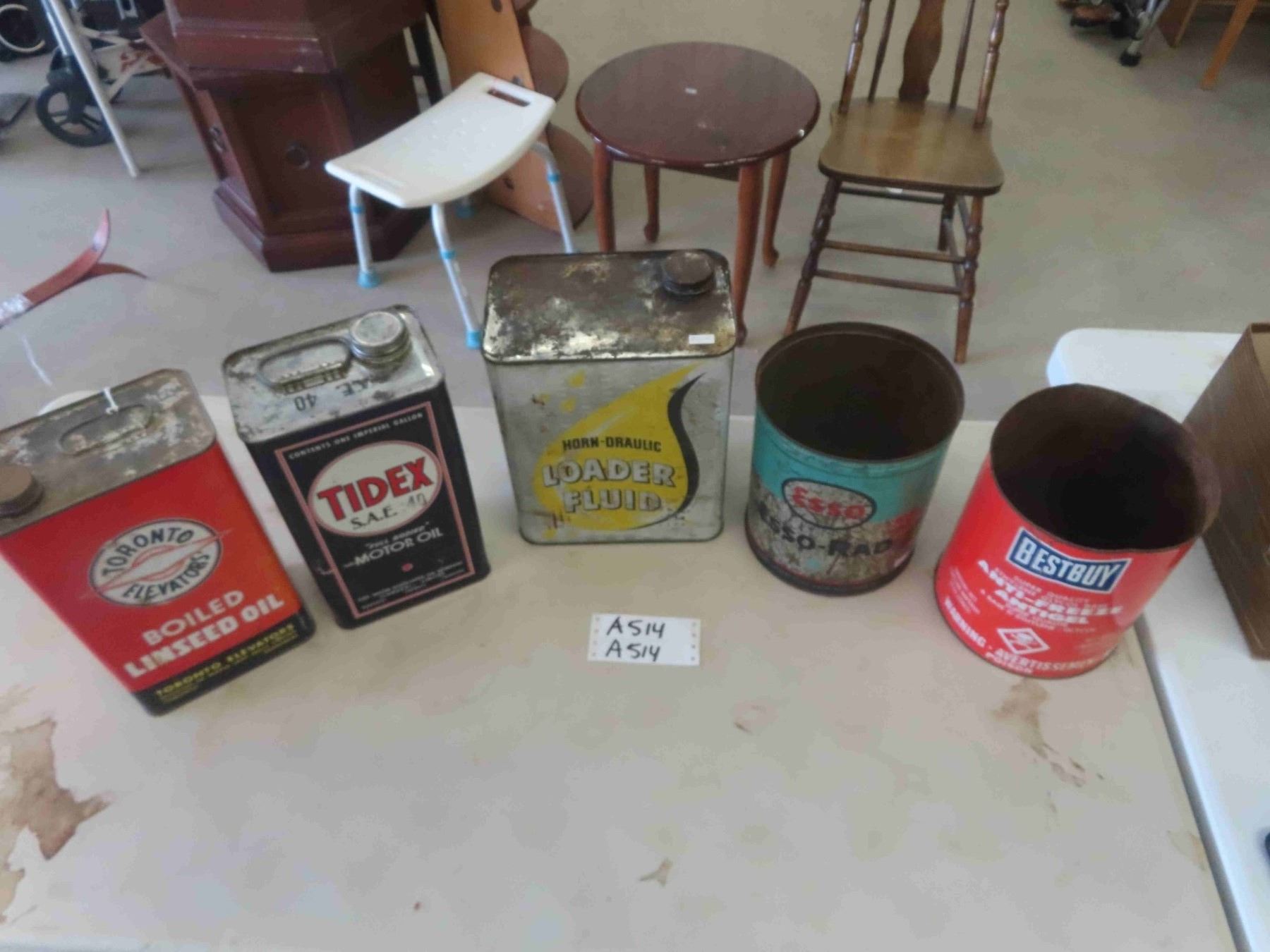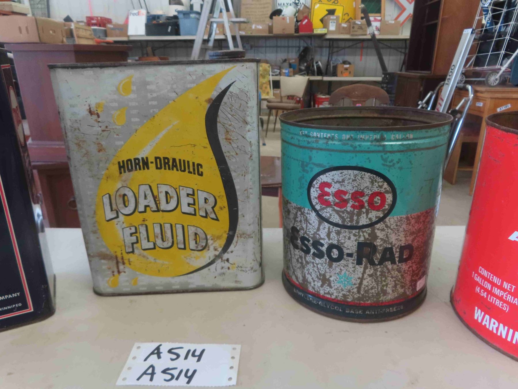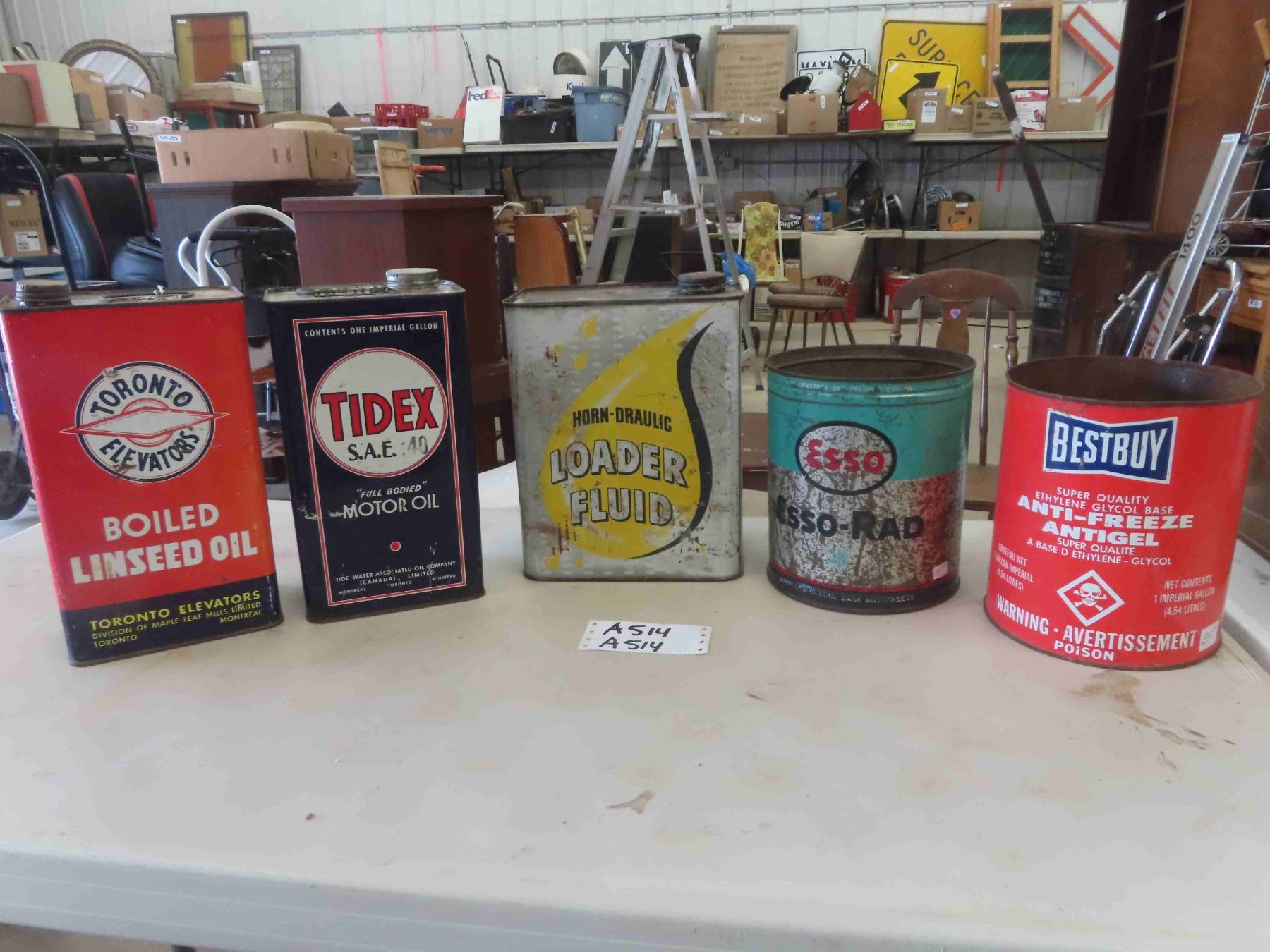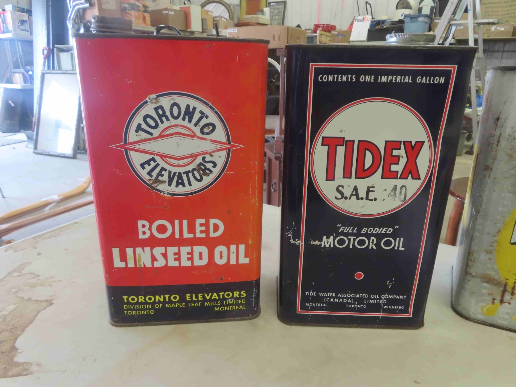 Tidex 1 Gal Oil Tin, Esso + Best Buy Anti Freeze 1 Gal Tins, Horn Loader Fluid, Toronto Elevators Linseed Oil