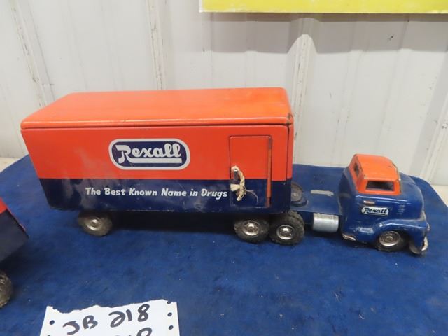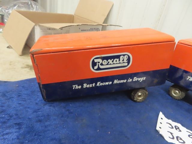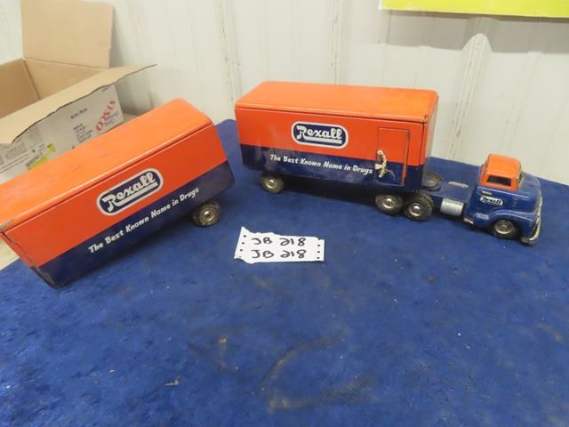 Tin RExall Semi Truck plus Extra Trailer 6" x 16" x 4"