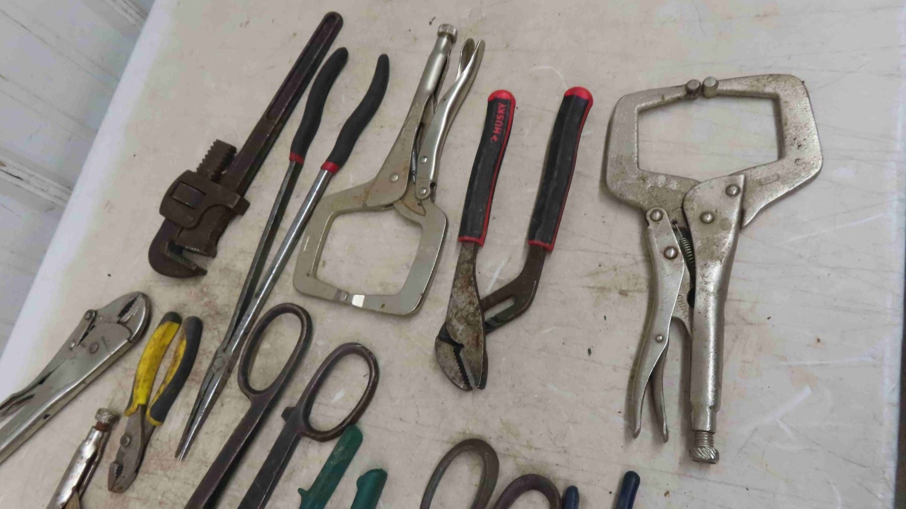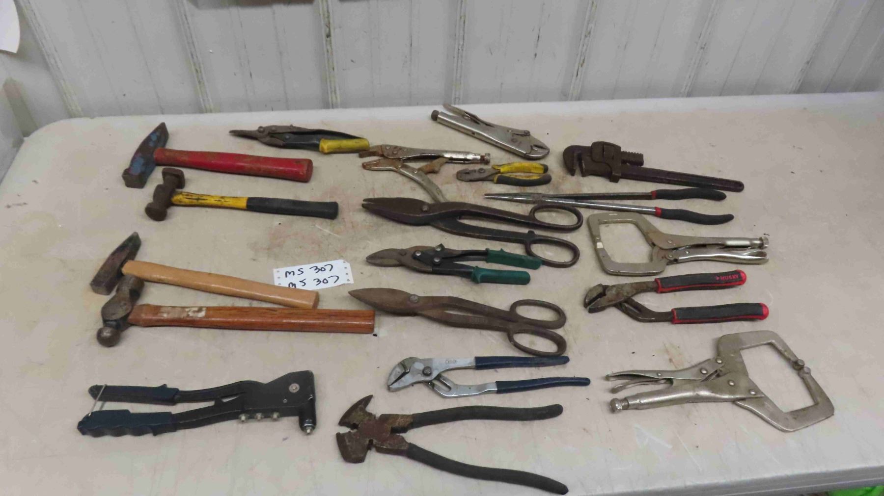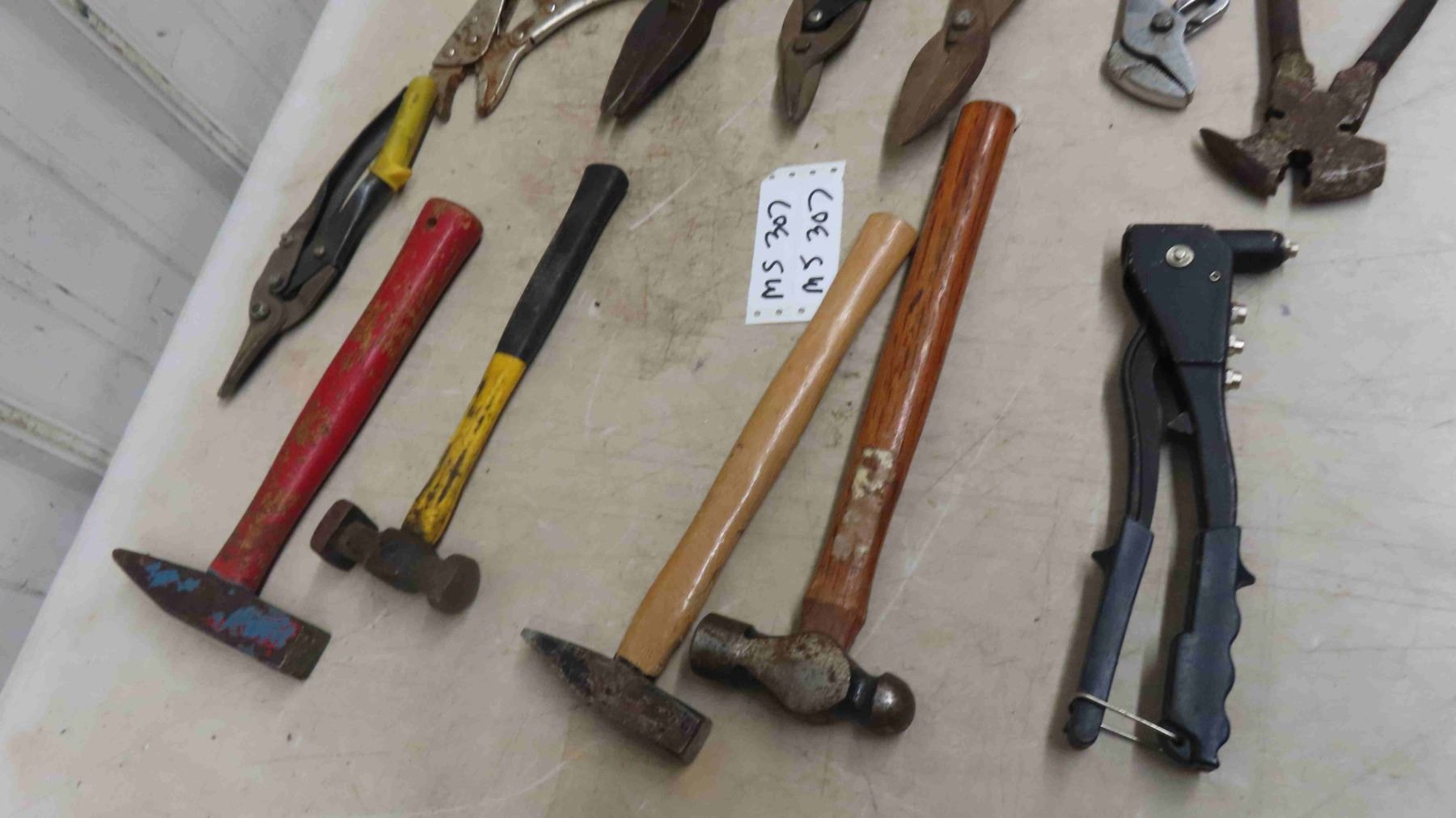 Tin Snips, Vice Grips, Pliers, Pipe Wrench, Riveter, Hammers