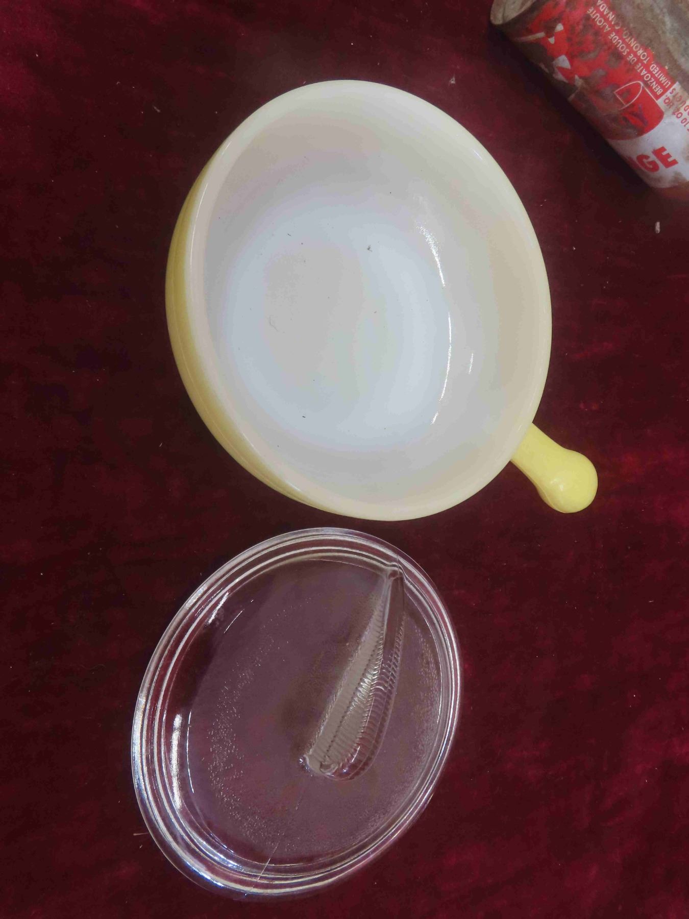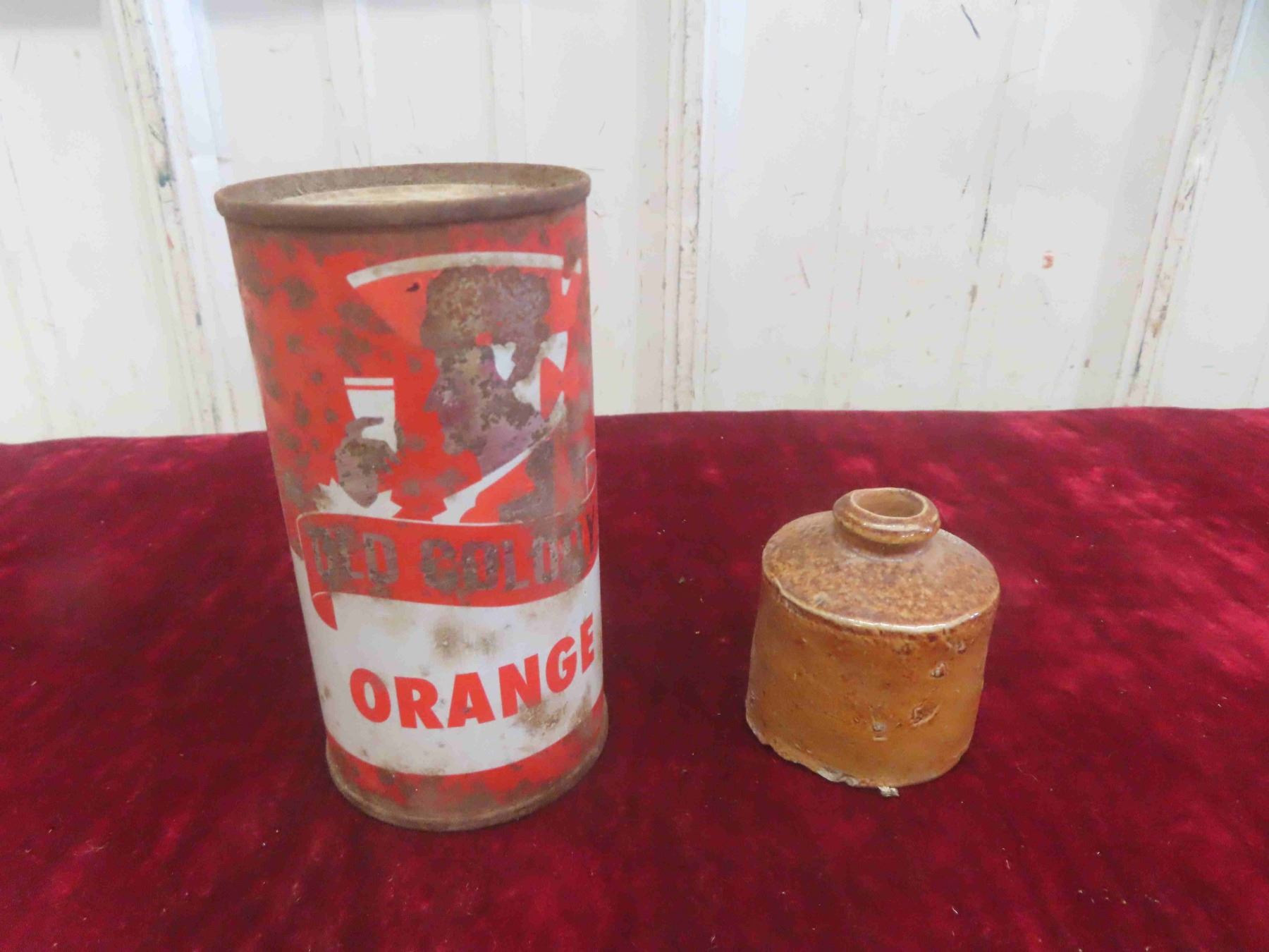 Tins, Vintage Old Country Orange Tin Trap, Level, Glass Bake Bowl