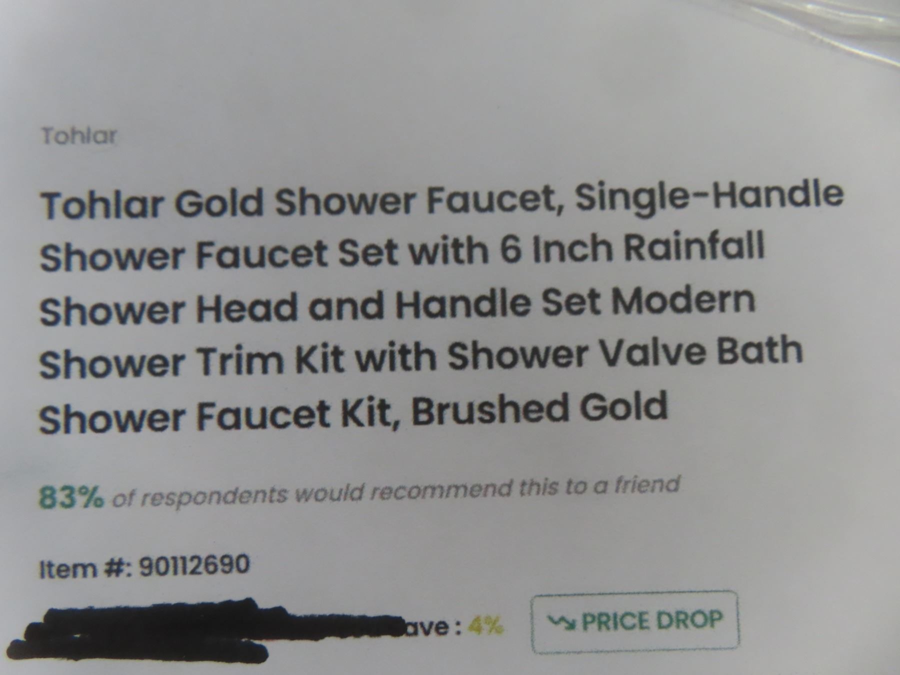 Tohlar Gold Shower Faucet, Single Handle Faucet Set with 6 Inch Rainfall Head - Brushed Golds, New or Store Return