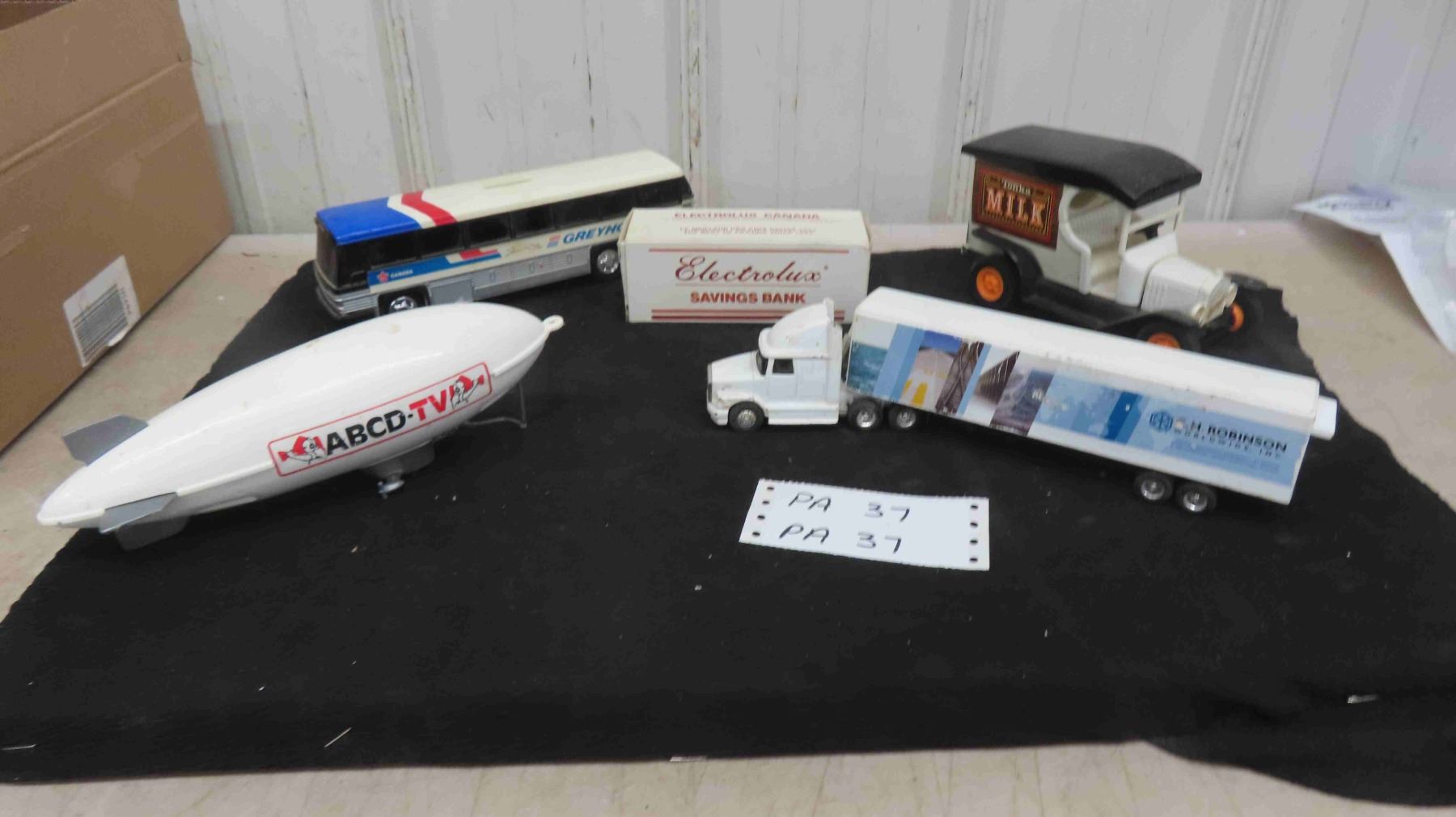 Tonka Milk Truck, Electrolux, Savings Bank, ABCD TV Toy, Greyhound Bank, C.H Robinson Advertising Transport Truck