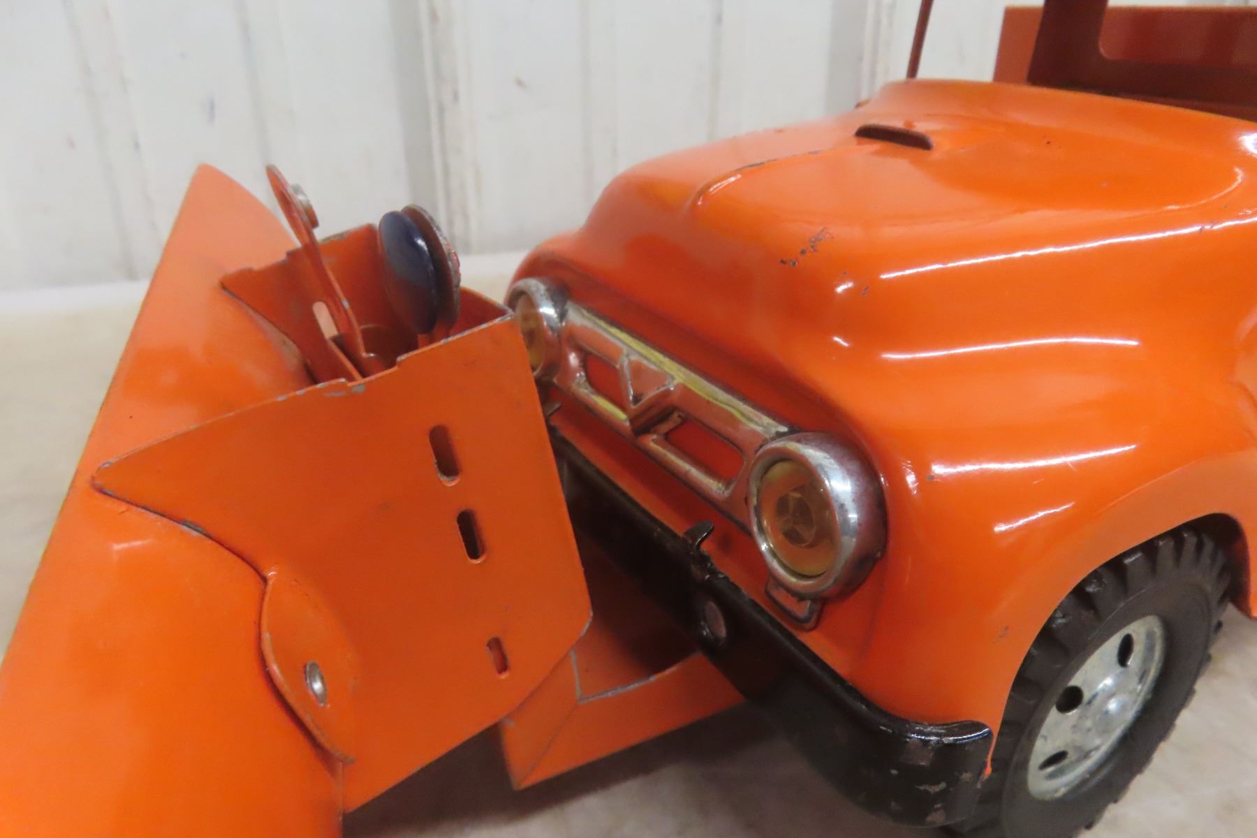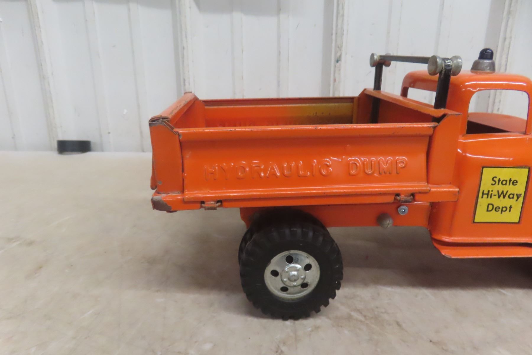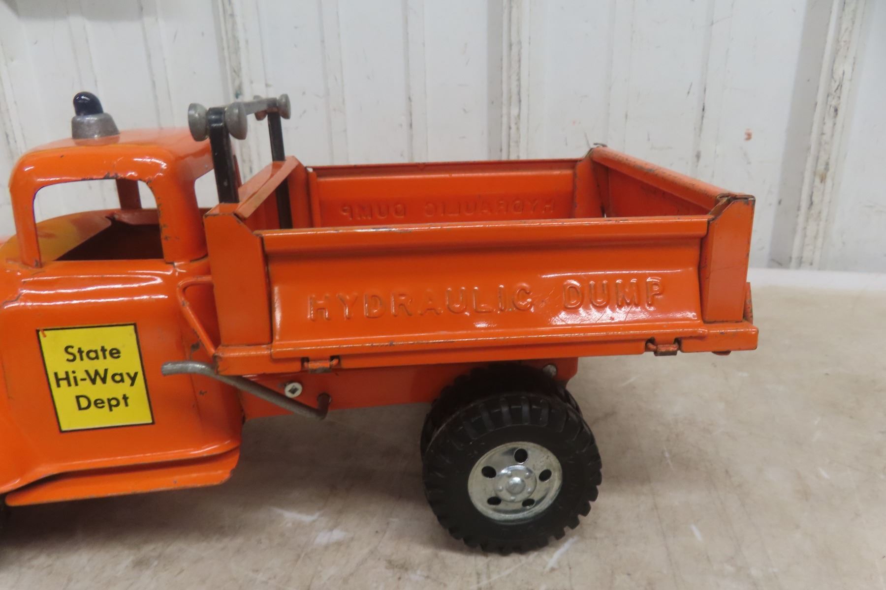 Tonka State Highway Dept Hydraulic Dump Truck with Snowplow Pressed Metal 1956 or 1957 15"