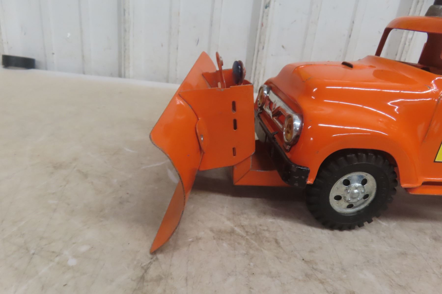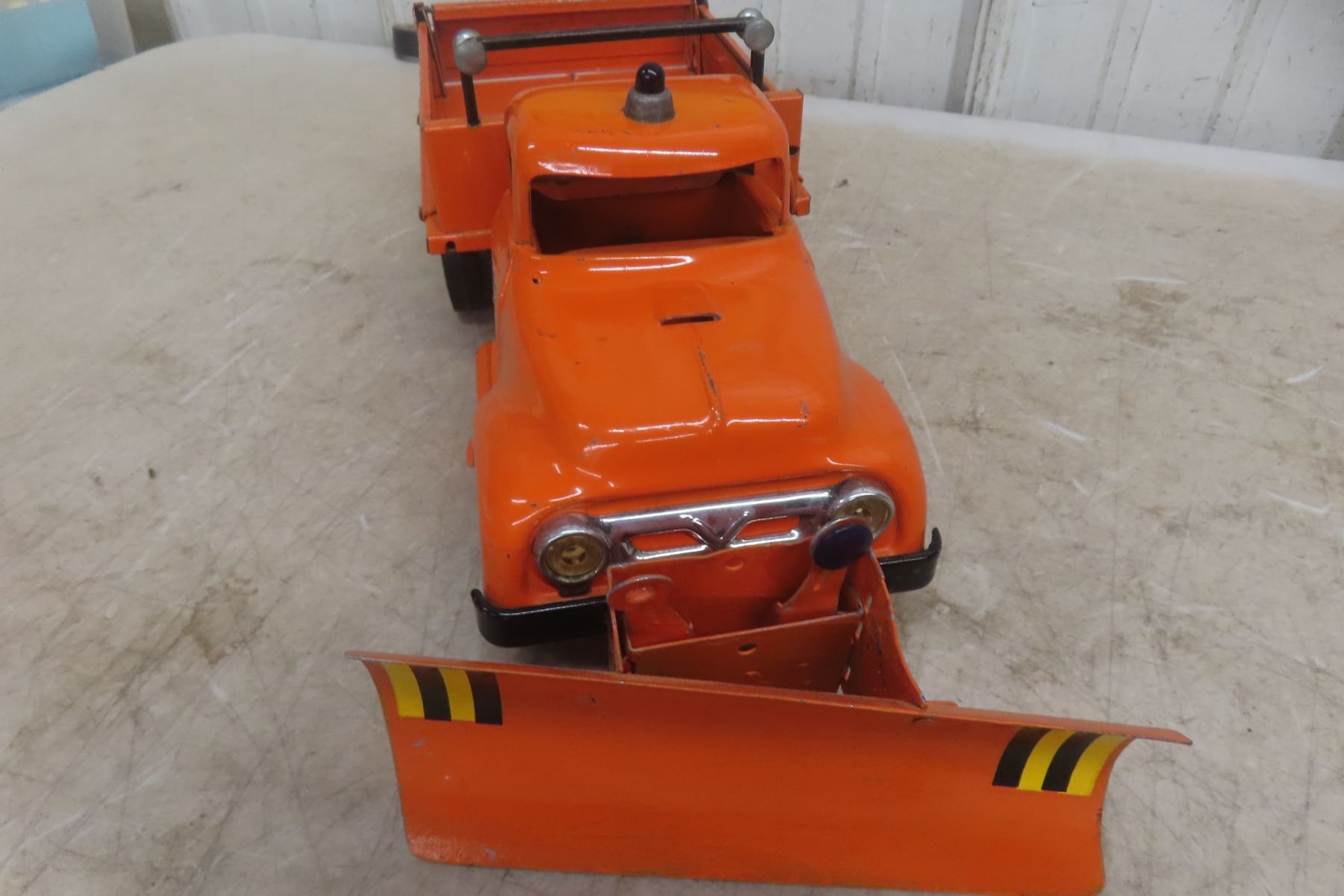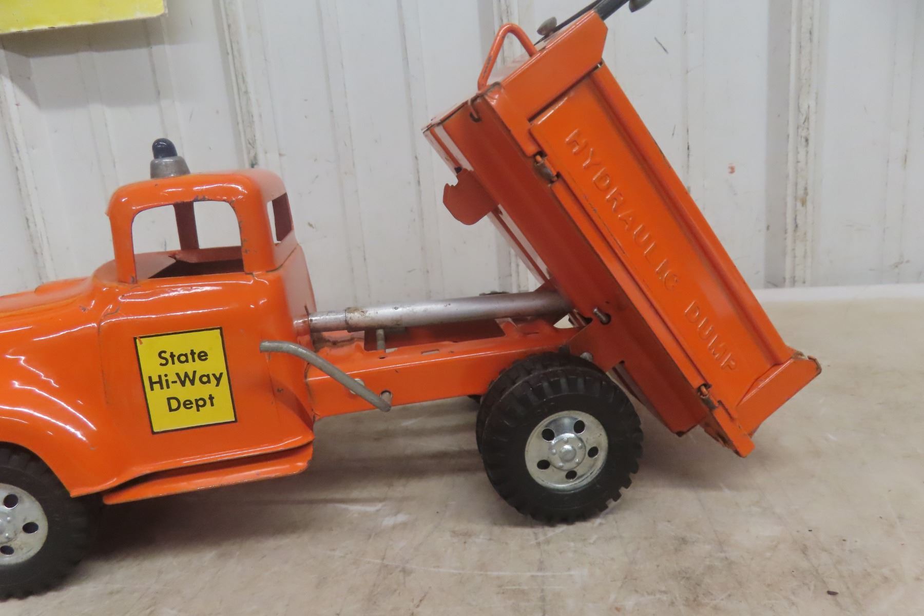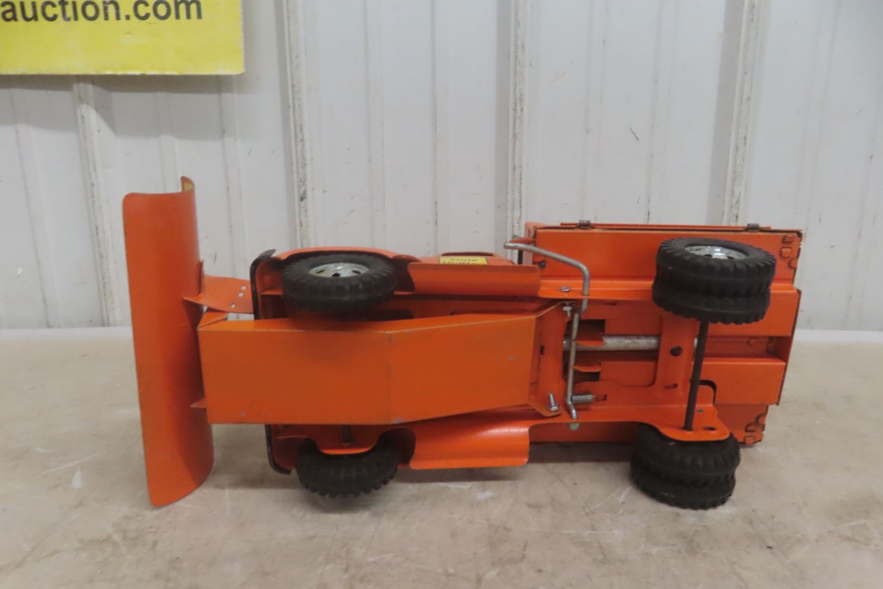 Tonka State Highway Dept Hydraulic Dump Truck with Snowplow Pressed Metal 1956 or 1957 15"