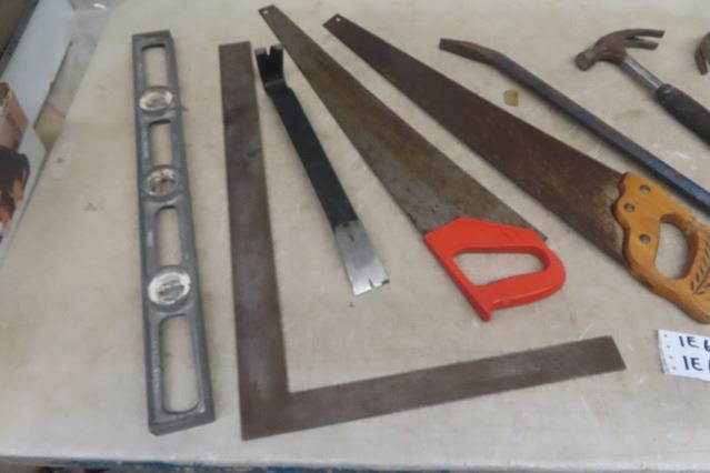 Tool Belt, Hammers, Saws, Crowbars, Level, Square