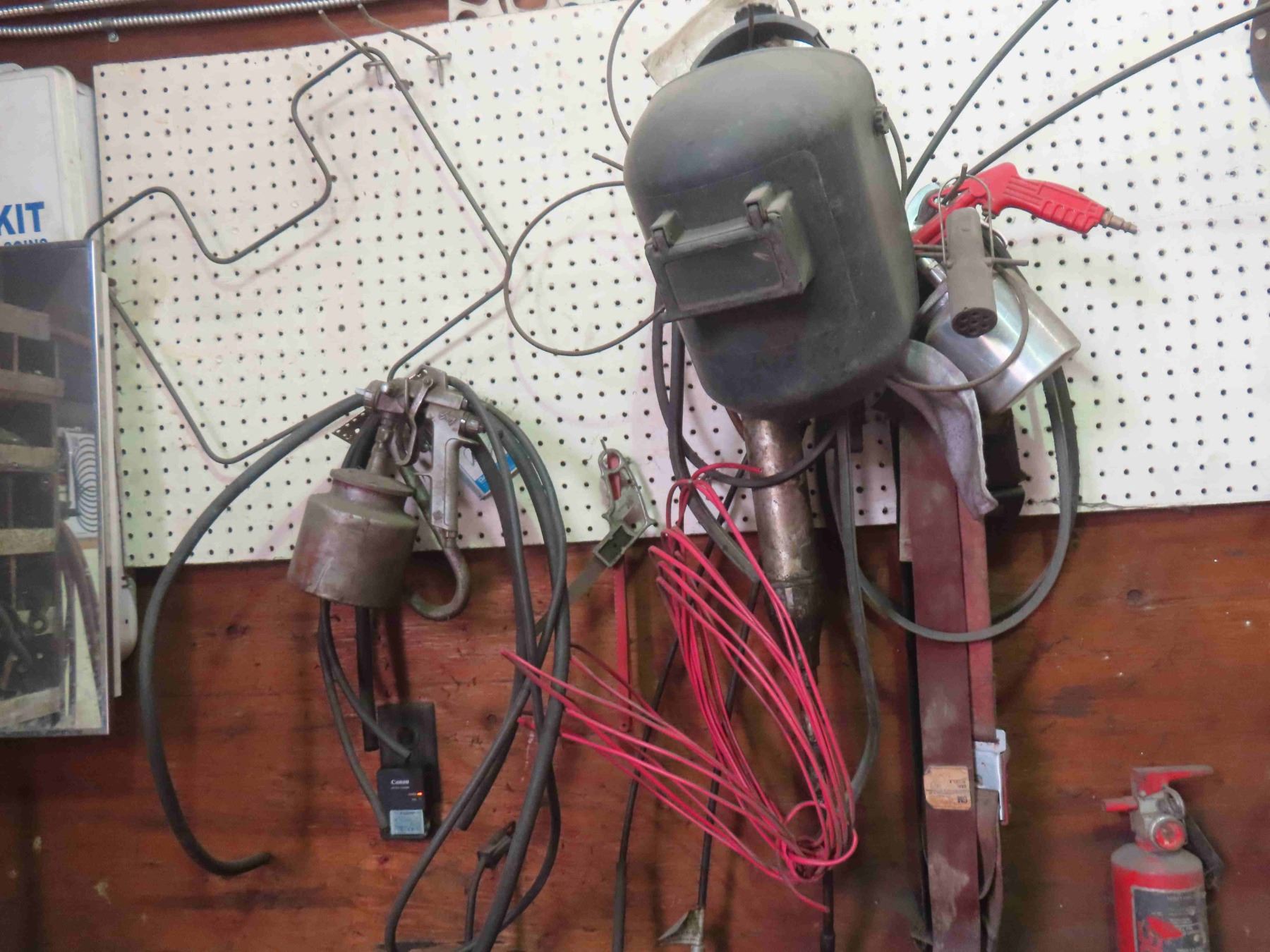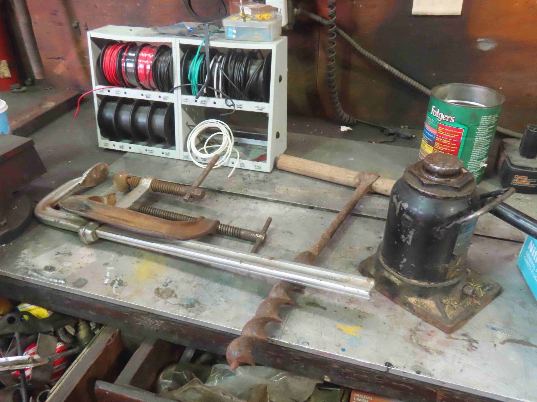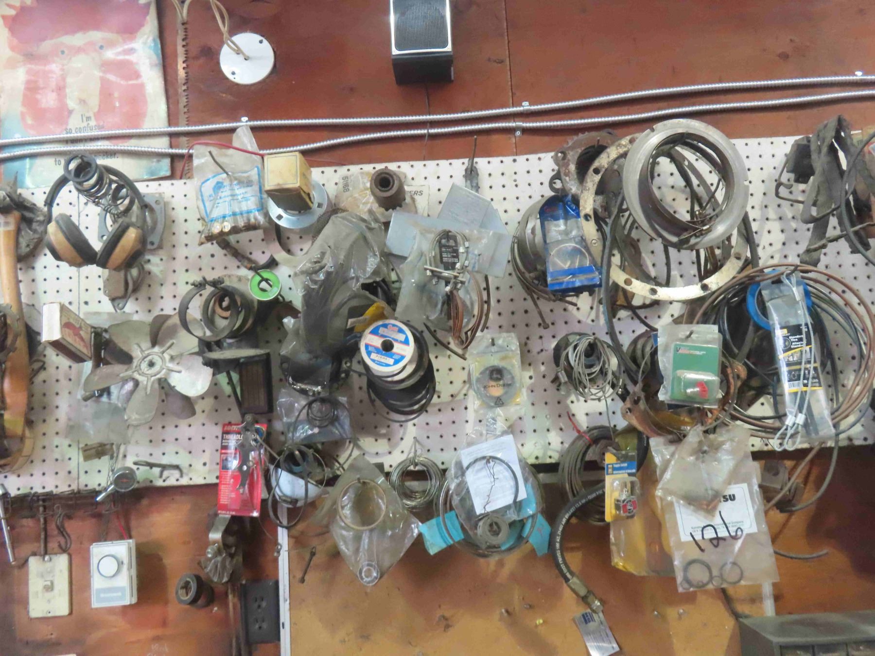 Tool Bench Full of Shop Items: Air Couplings, Trailer