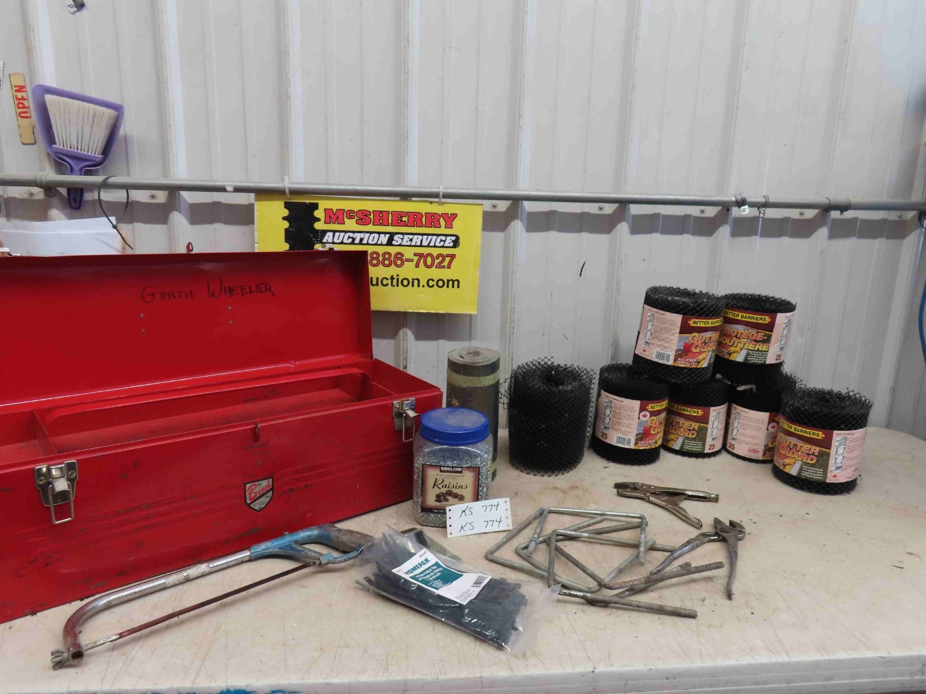Tool Box , 7 Rolls of Gutter Guard , Hack Saw, Vice Grips , 1/2'' Sheet Metal Screws & More