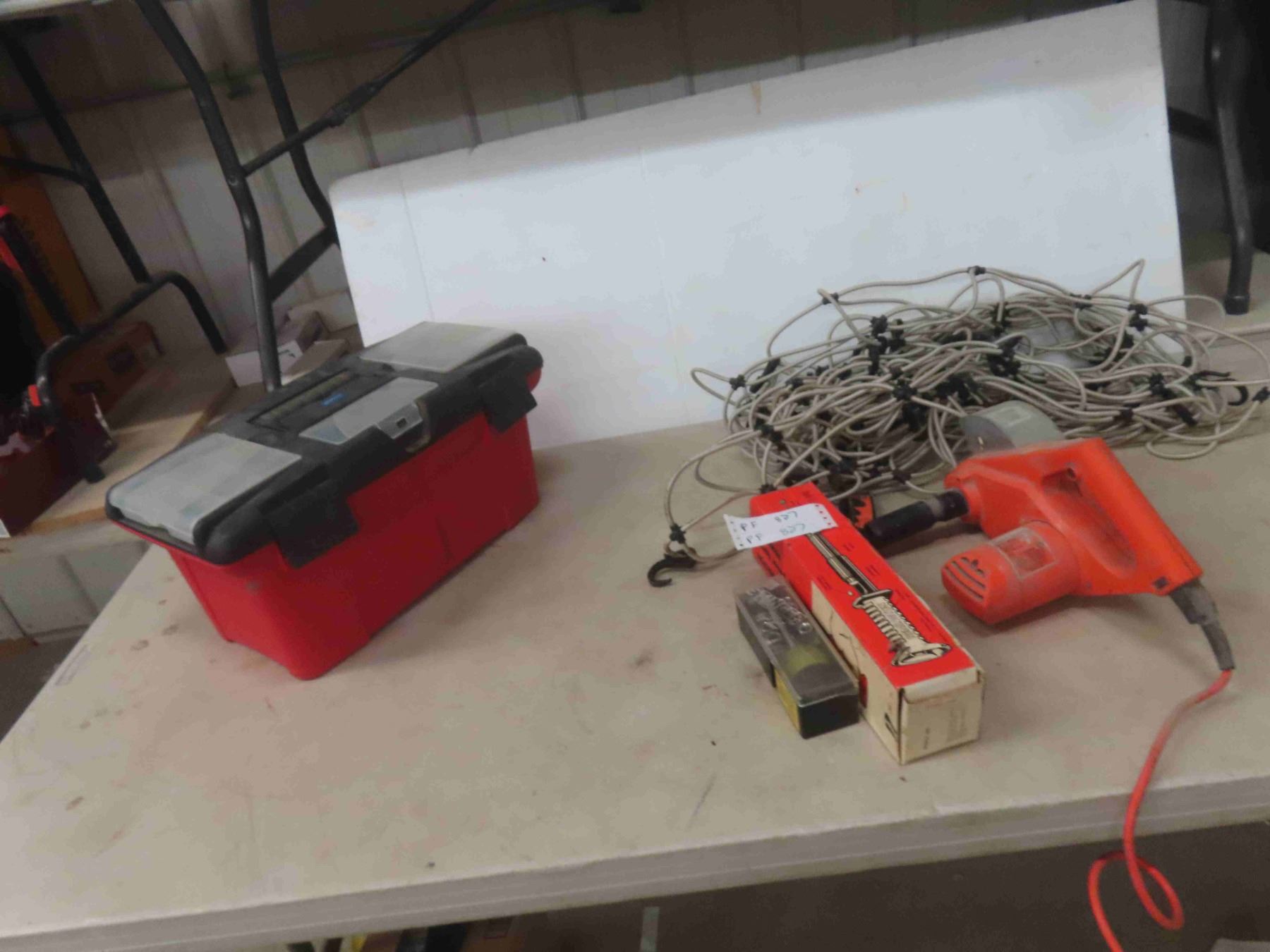 Tool Box , Black and Decker Wire Wheel, Concrete Nail Driver, Truck Box Load Mesh