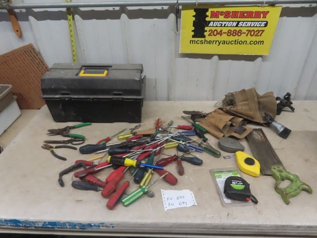 Tool Box, Carpenter Belt, New Tape Measure, Screwdrivers plus more