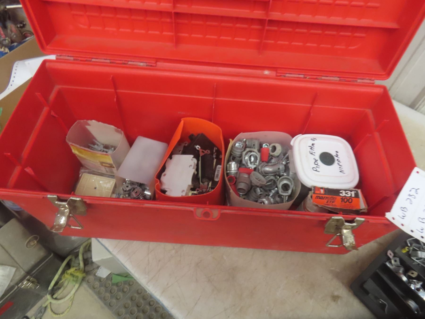 Tool Box Full of Electric Connectors, Switches, Clamps +